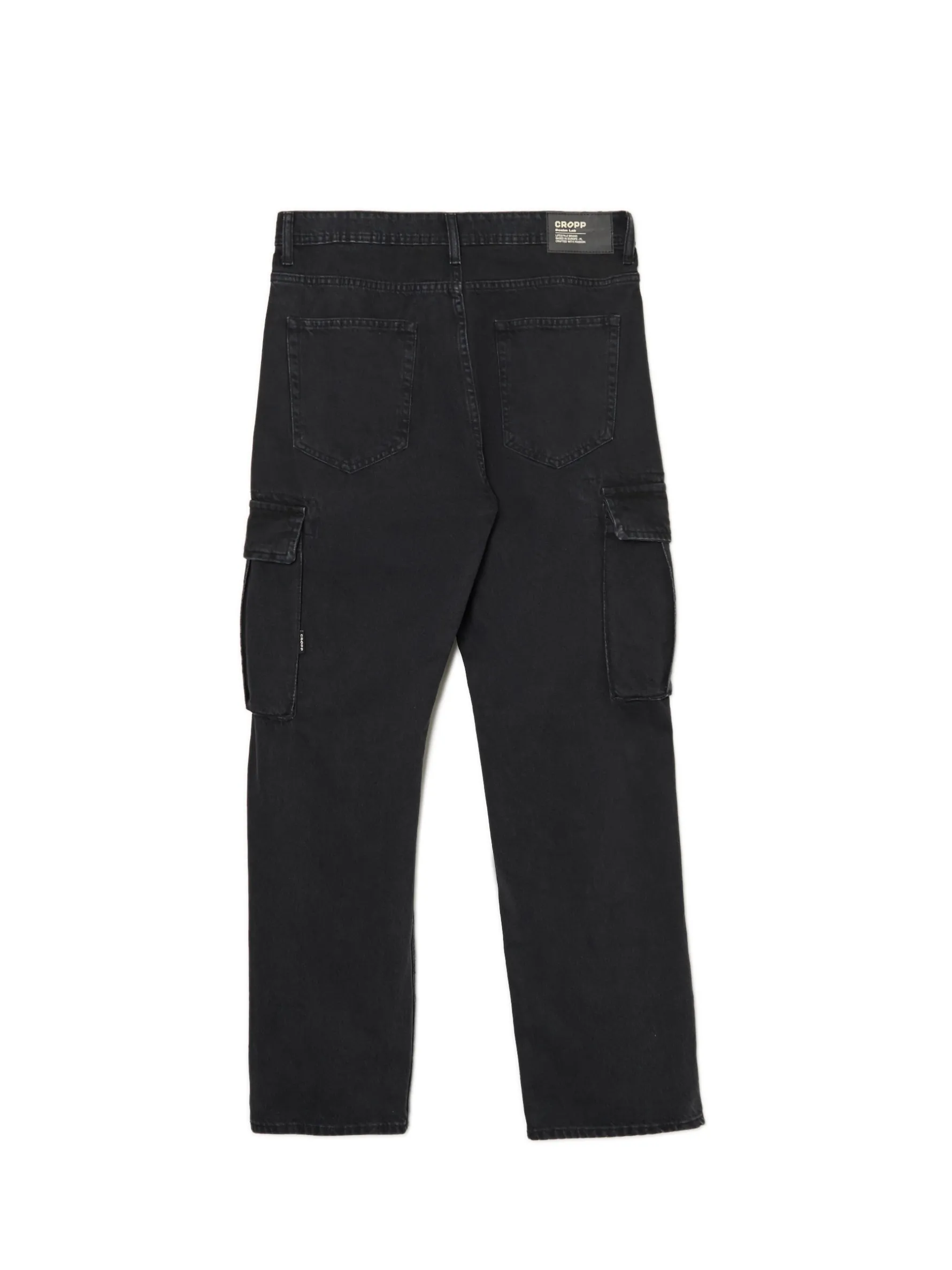 Męskie spodnie jeansowe uszyte z denimowej tkaniny z efektem sprania. Luźny, niekrępujący ruchów krój zapewni Ci wygodę podczas każdej aktywności. 100% bawełny swobodny, luźny krój zapięcie na zamek i guzik otwarte kieszenie po bokach naszywane kieszenie z tyłu dodatkowe kieszenie cargo na nogawkach szlufki na pasek efekt sprania na całości