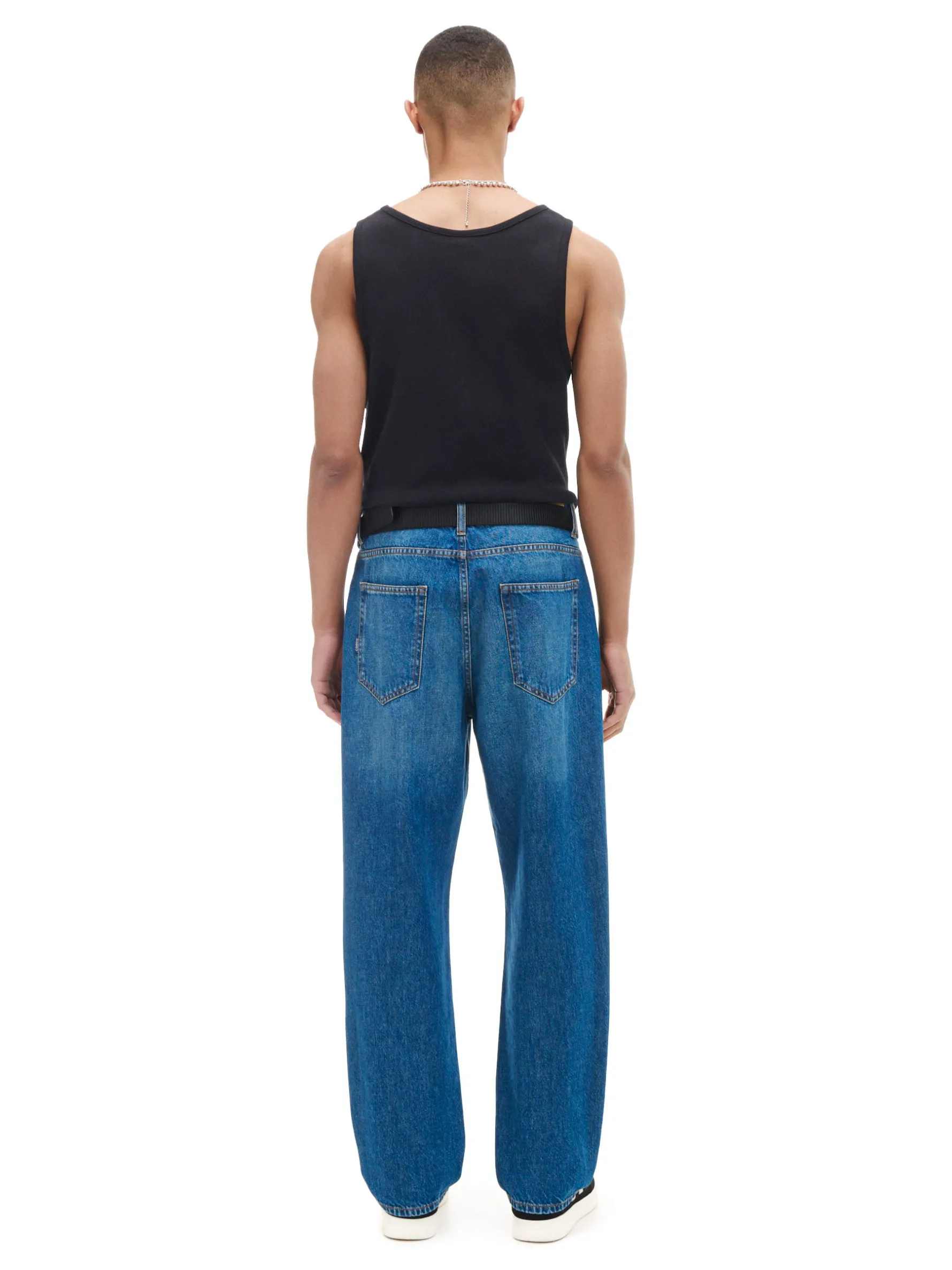 Męskie spodnie jeansowe typu relaxed, uszyte z bawełnianej tkaniny. Szlufki blisko siebie to praktyczne rozwiązanie na zmęczone ręce po całym dniu. Zrelaksuj się! 100% bawełny prosty krój zapięcie na zamek i guzik wąskie szlufki na pasek pięć kieszeni delikatny efekt sprania Wzrost modela: 185 cm
