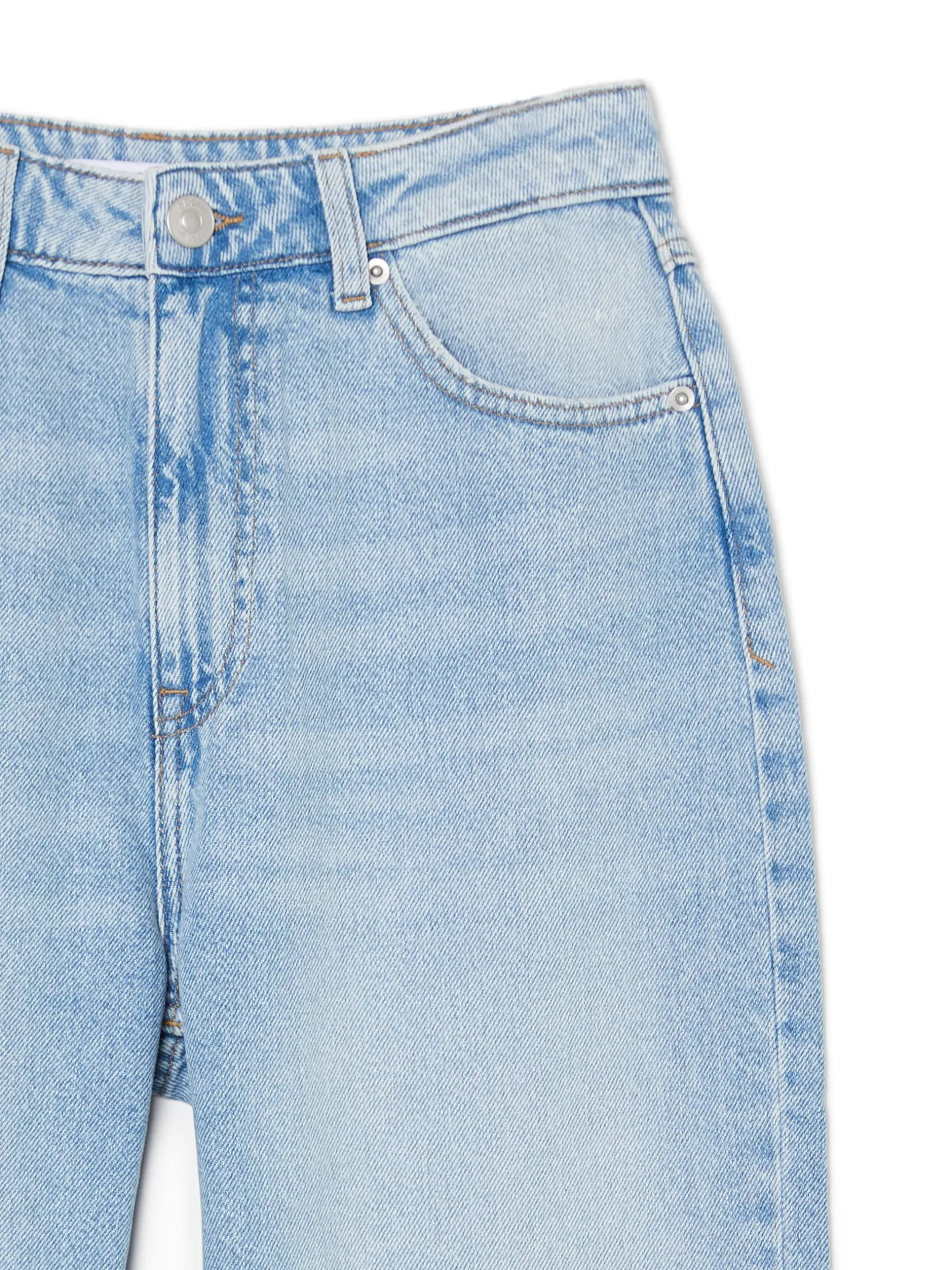 Damskie niebieskie jeansy, uszyte w 100% z bawełny. luźny krój baggy regularny stan, niski krok zapięcie na zamek i guzik długa, szeroka nogawka pięć kieszeni efekt sprania, przetarcia