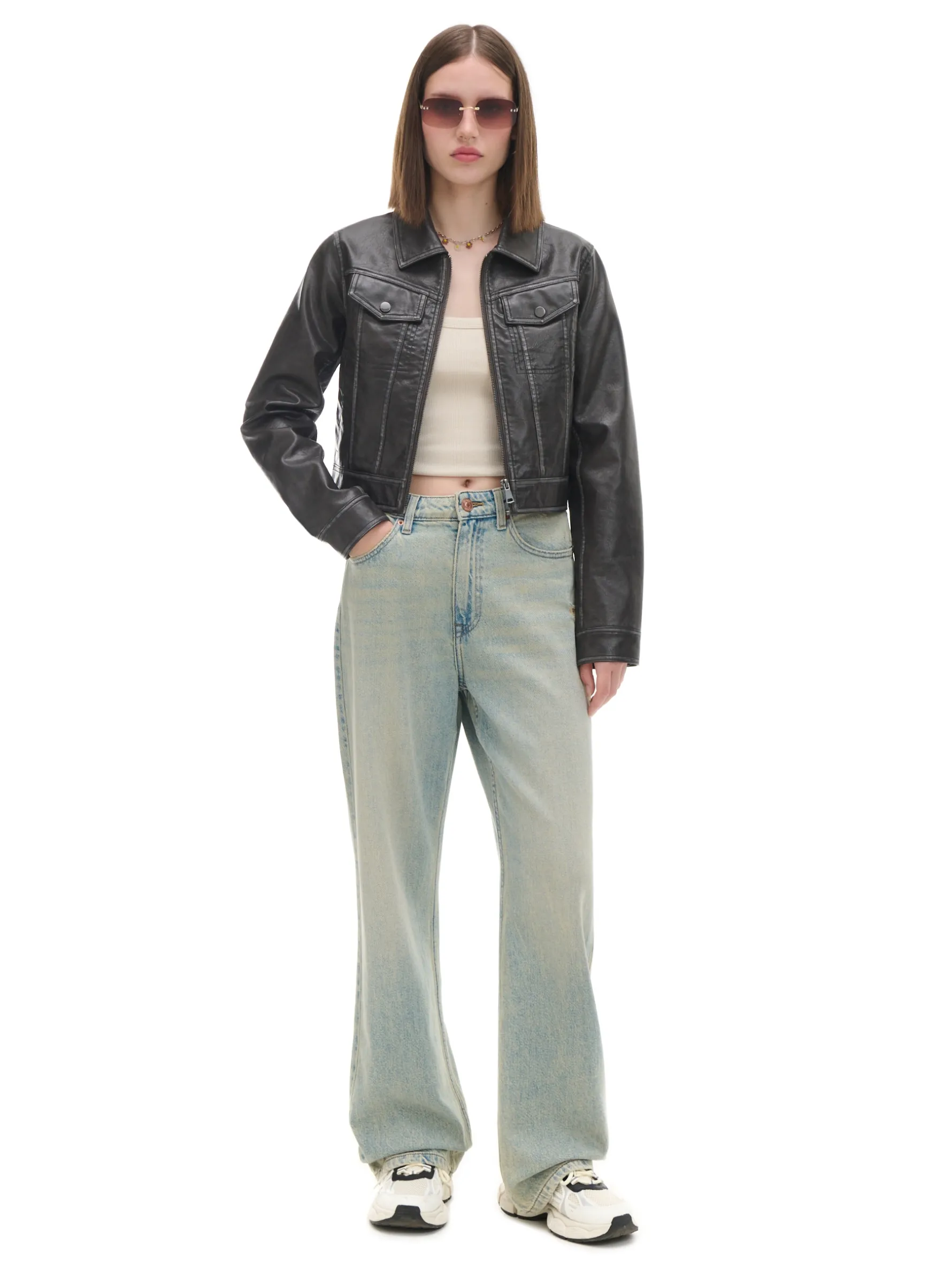 Damskie jeansy o swobodnym kroju baggy. Świetna baza wielu miejskich stylówek – sprawdź je! długa, luźna nogawka regularny stan, zapięcie na guzik i zamek cztery kieszenie szlufki na pasek efekt sprania all over lekki efekt sprania Wzrost modelki: 172 cm