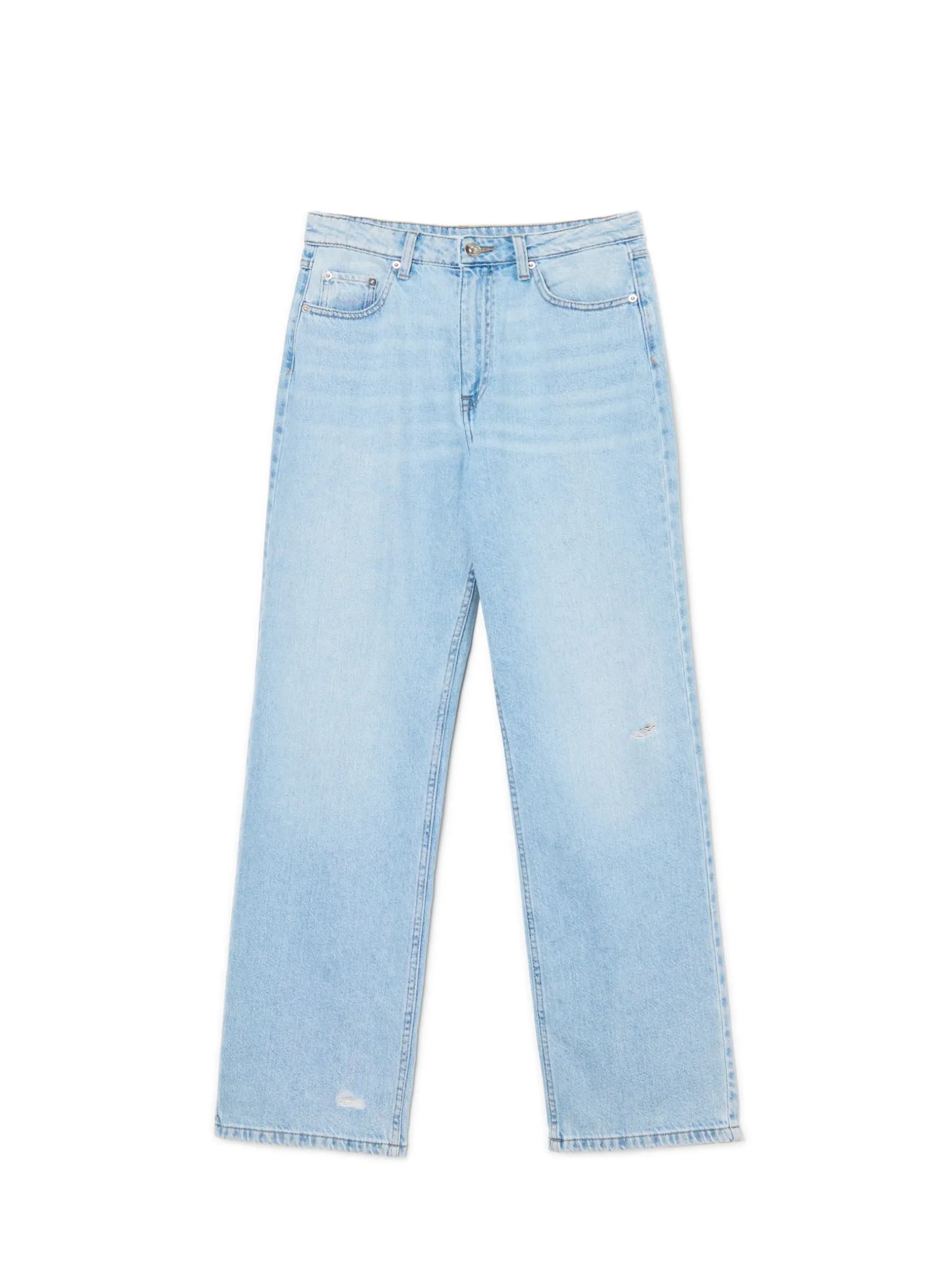Damskie jeansy o swobodnym kroju baggy. Świetna baza wielu miejskich stylówek – sprawdź je! długa, luźna nogawka regularny stan, zapięcie na guzik i zamek cztery kieszenie szlufki na pasek efekt sprania all over lekki efekt sprania Wzrost modelki: 172 cm