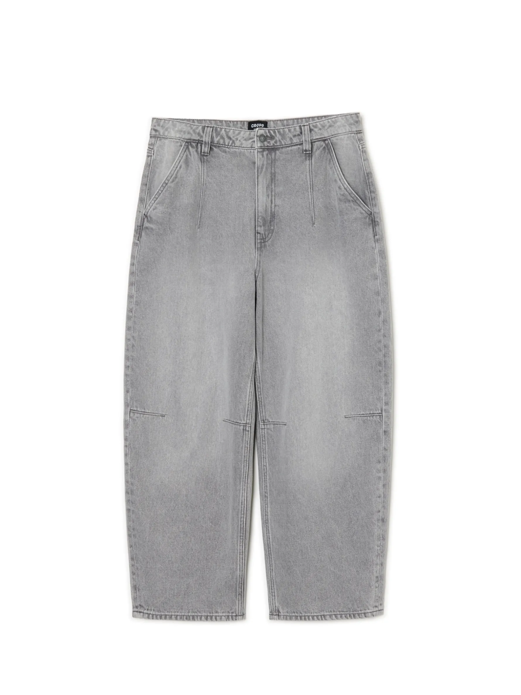 Denimowe męskie spodnie o kroju skater. Fason charakteryzuje się mocno obniżonym krokiem i bardzo szeroką nogawką. Byle było luźno! 100% bawełny obszerny krój baggy zapięcie na zamek i guzik długie, szerokie nogawki skośne kieszenie z przodu dwie kieszenie z patkami i zapięciem na zatrzaski ozdobne zakładki efekt sprania na całości