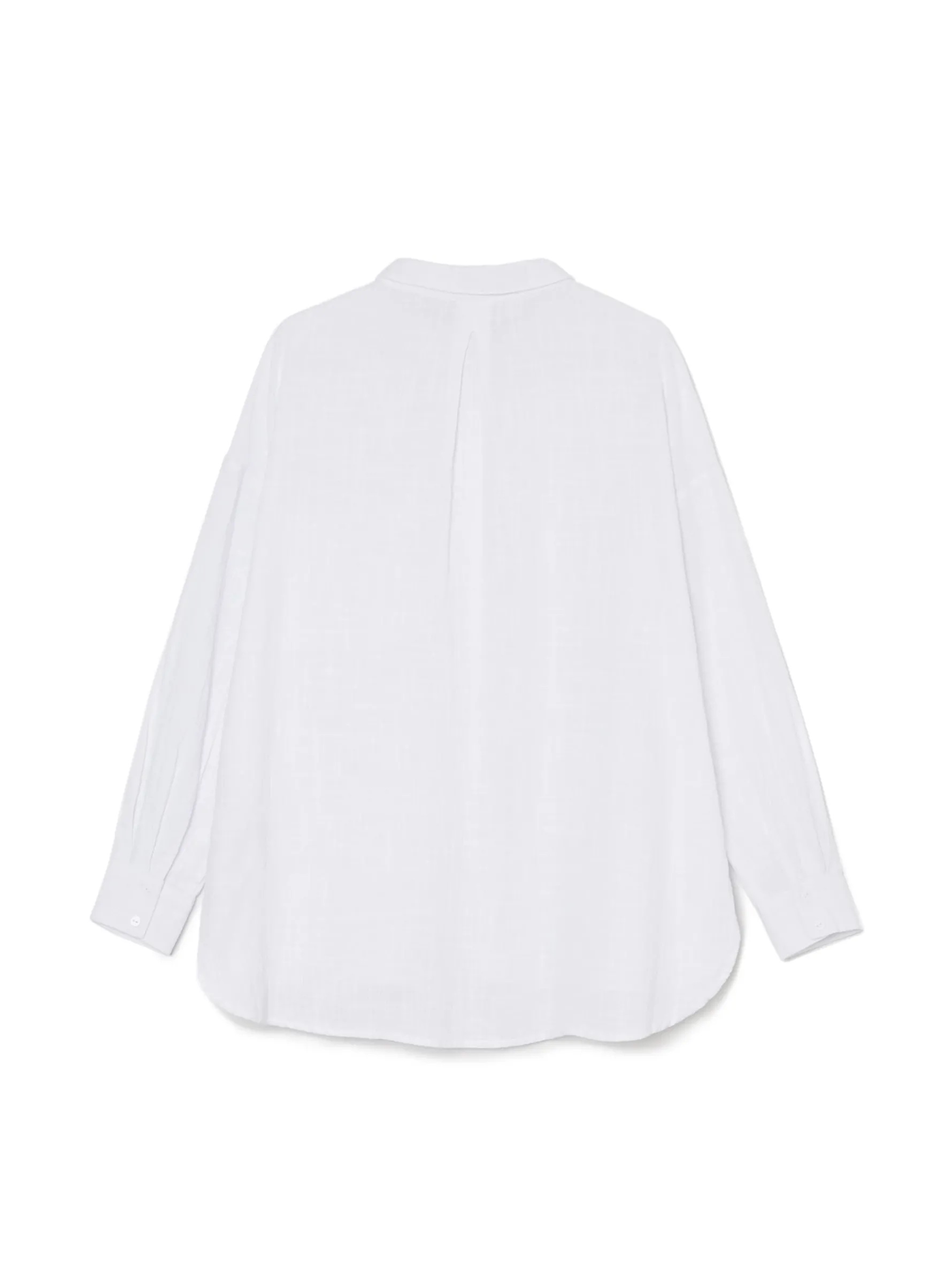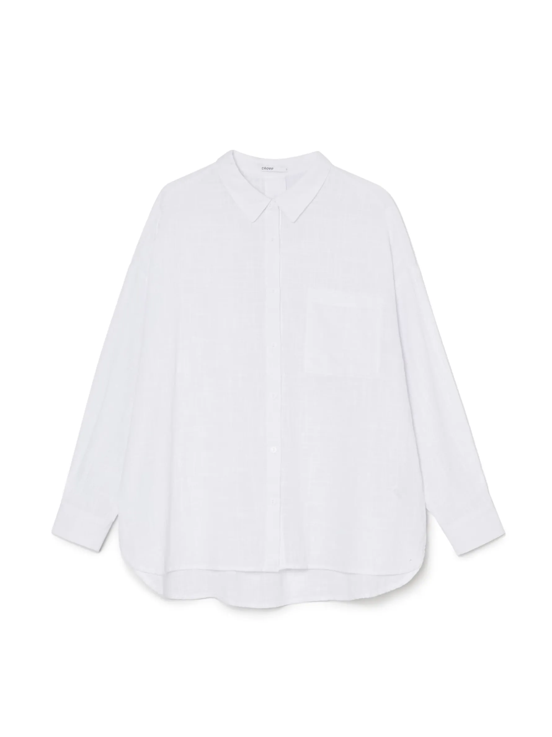 Biała damska koszula uszyta z bawełny idealna na letnie wieczory! 100% bawełny krój oversize zapięcie na guziki na całej długości klasyczny kołnierzyk długie rękawy zakończone mankietem z guzikami naszywana kieszeń na piersi Ten produkt ma bardzo luźny krój. By uniknąć efektu superoversize, wybierz mniejszy rozmiar niż zazwyczaj.
