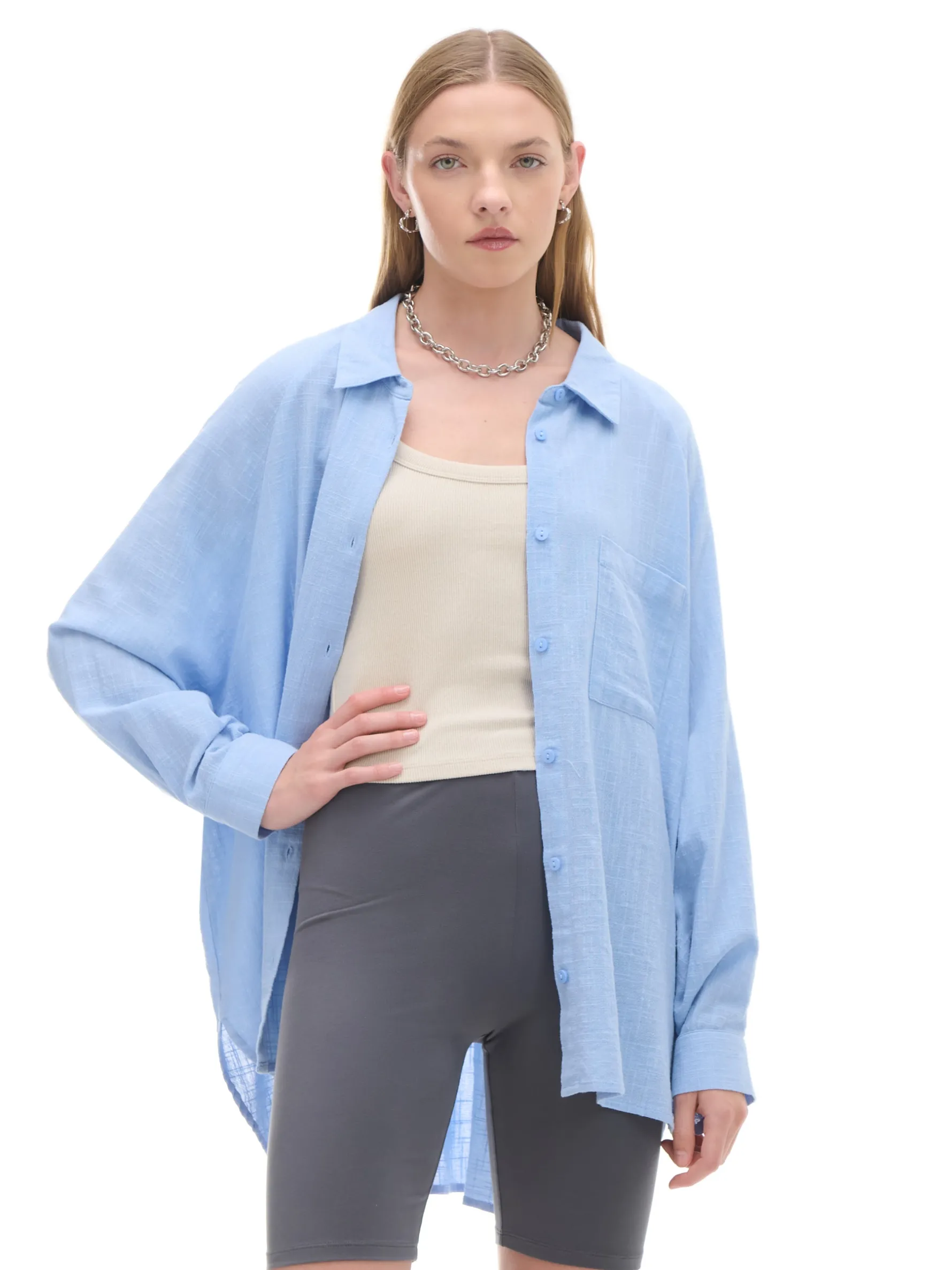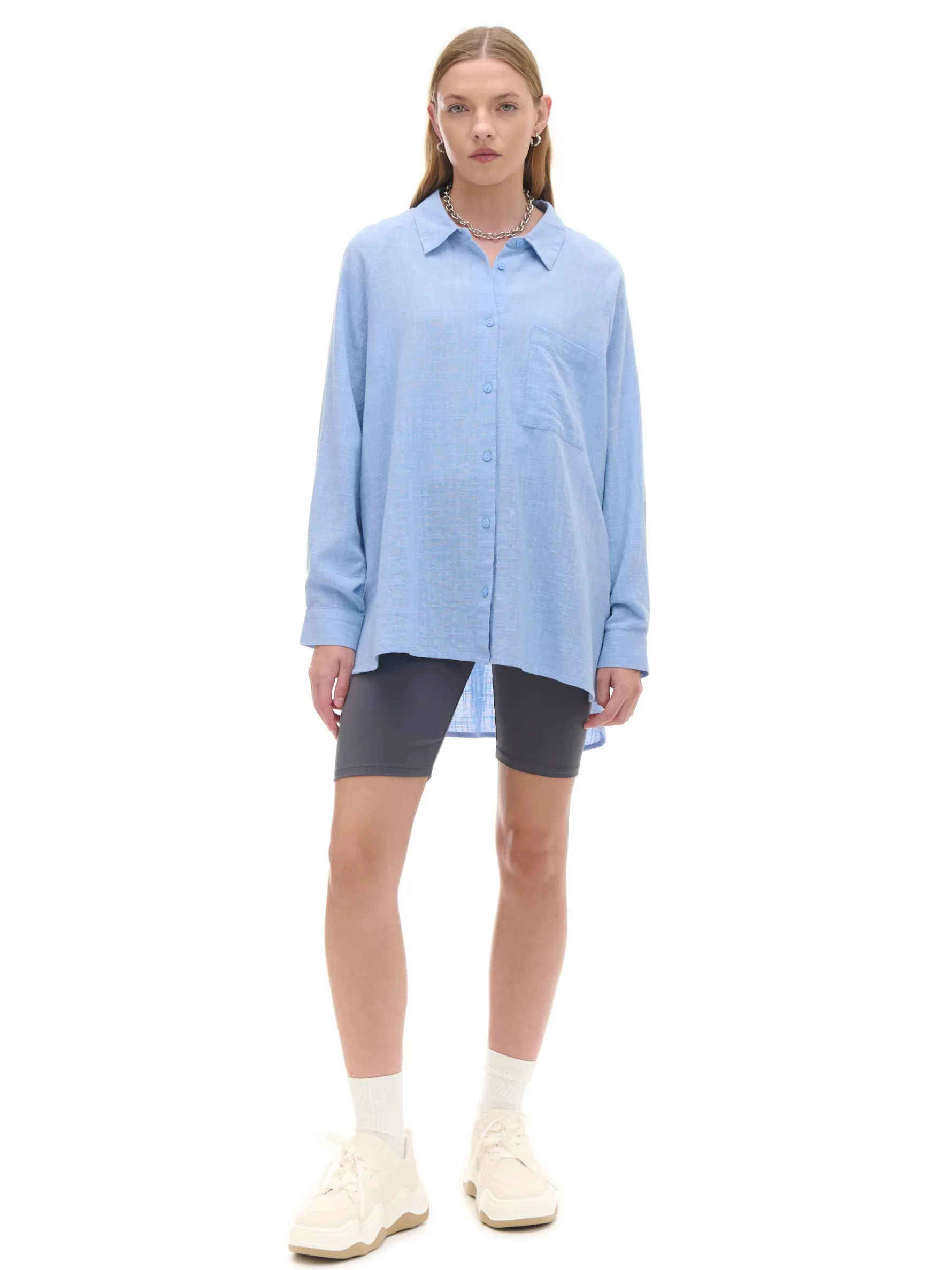 Damska bawełniana koszula z długim rękawem, poszerzana ku dołowi. Ten model to klasyk z nutą nowoczesności, który warto mieć w swojej szafie! 100% bawełny koszula o luźnym kroju rozszerzany dół jednorzędowe zapięcie na guziki klasyczny konierzyk długie rękawy z guzikami przy mankietach po dwa guziki przy mankietach