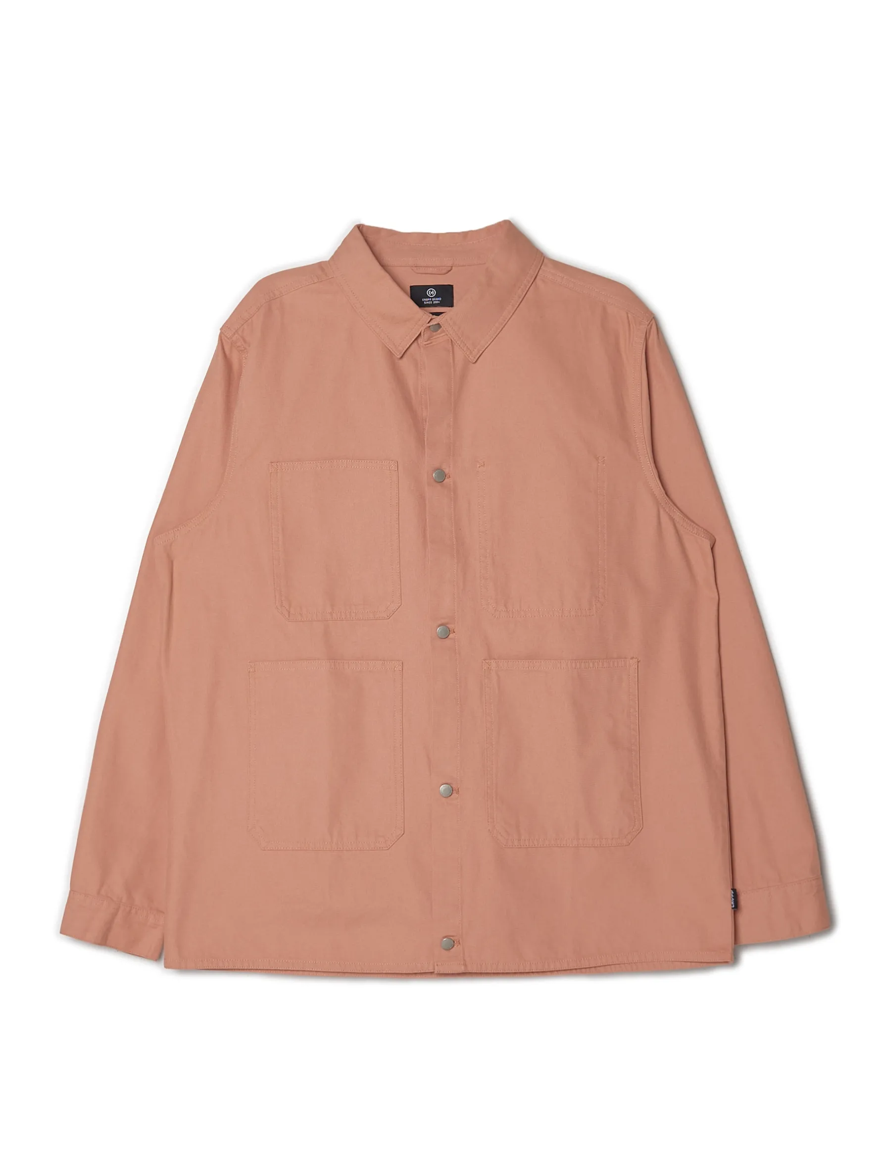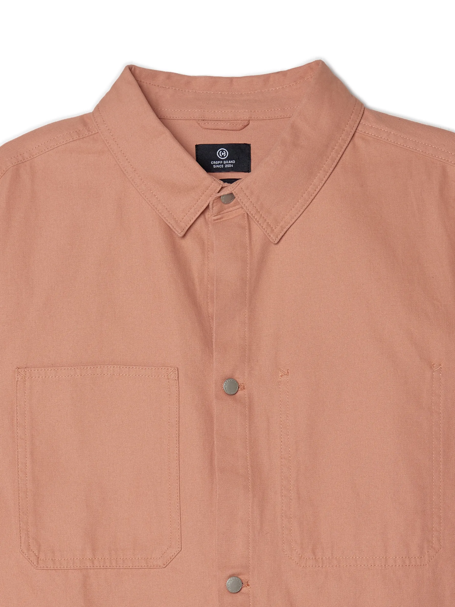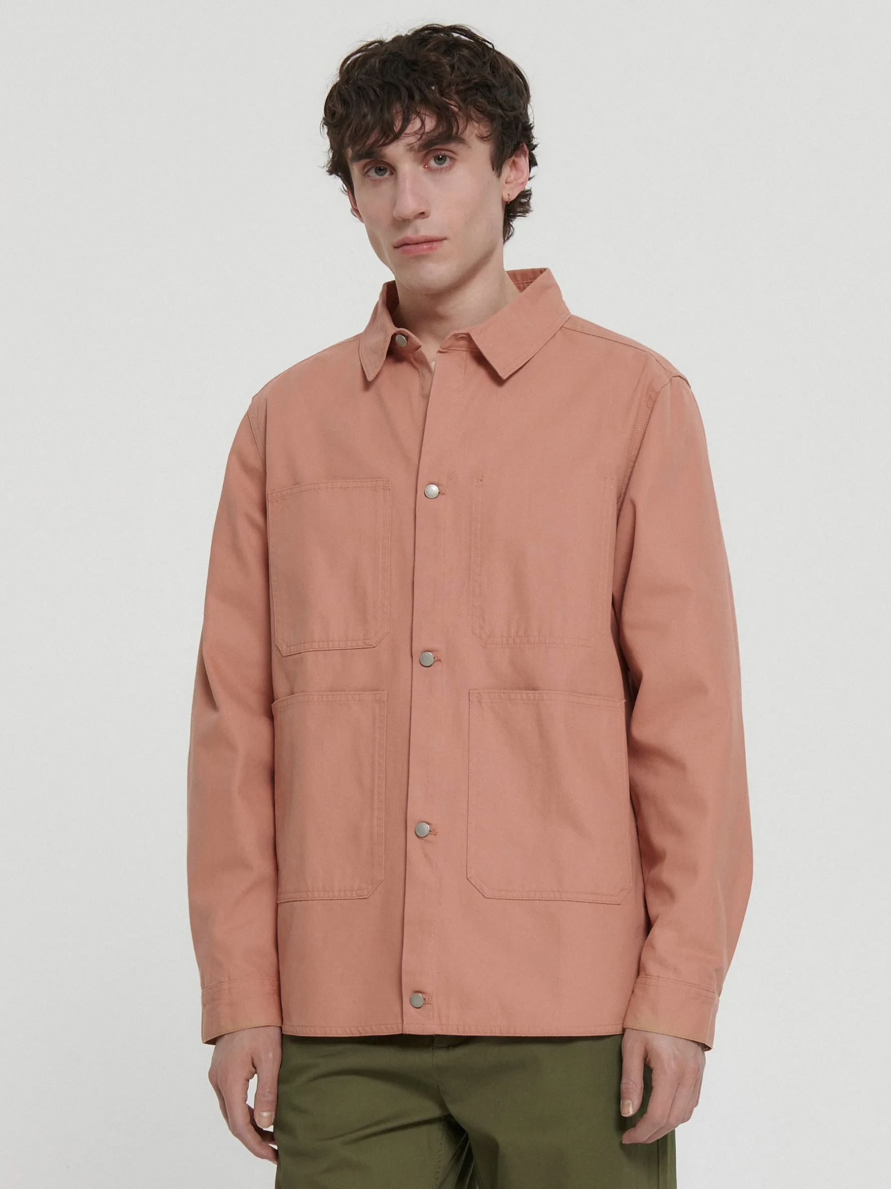 Męska koszula wierzchnia, uszyta z grubej bawełnianej tkaniny. regularny krój zapięcie na guziki, kołnierzyk długie rękawy, zakończone mankietem zapinanym na guzik trzy duże kieszenie zewnętrzne jedna kieszeń wewnątrz Wzrost modela: 186 cm