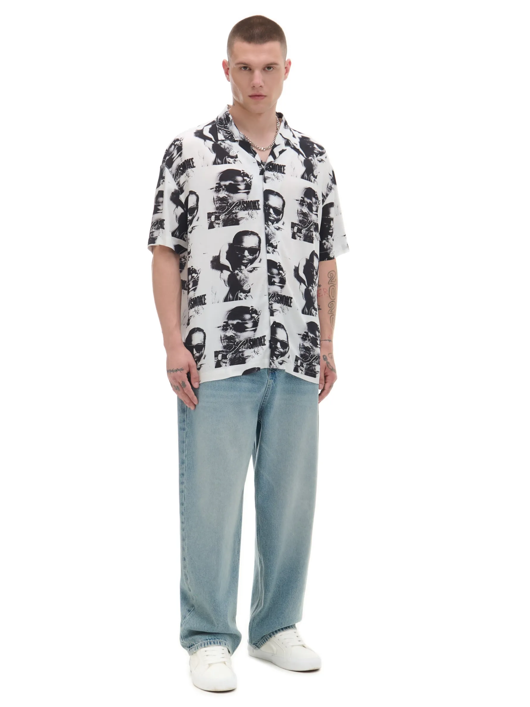 Męska koszula z krótkim rękawem, uszyta z wiskozy. Na całym materiale licencjonowany nadruk z podobizną Pop Smoke’a. Sztos impreza gwarantowana! 100% wiskozy swobodny, luźny krój krótkie rękawy nadruk all over Model prezentuje produkt w rozmiarze M/L. Wzrost modela: 185 cm TM© The Estate of Pop Smoke LLC. Under License to Bravado International Group. All Rights Reserved.