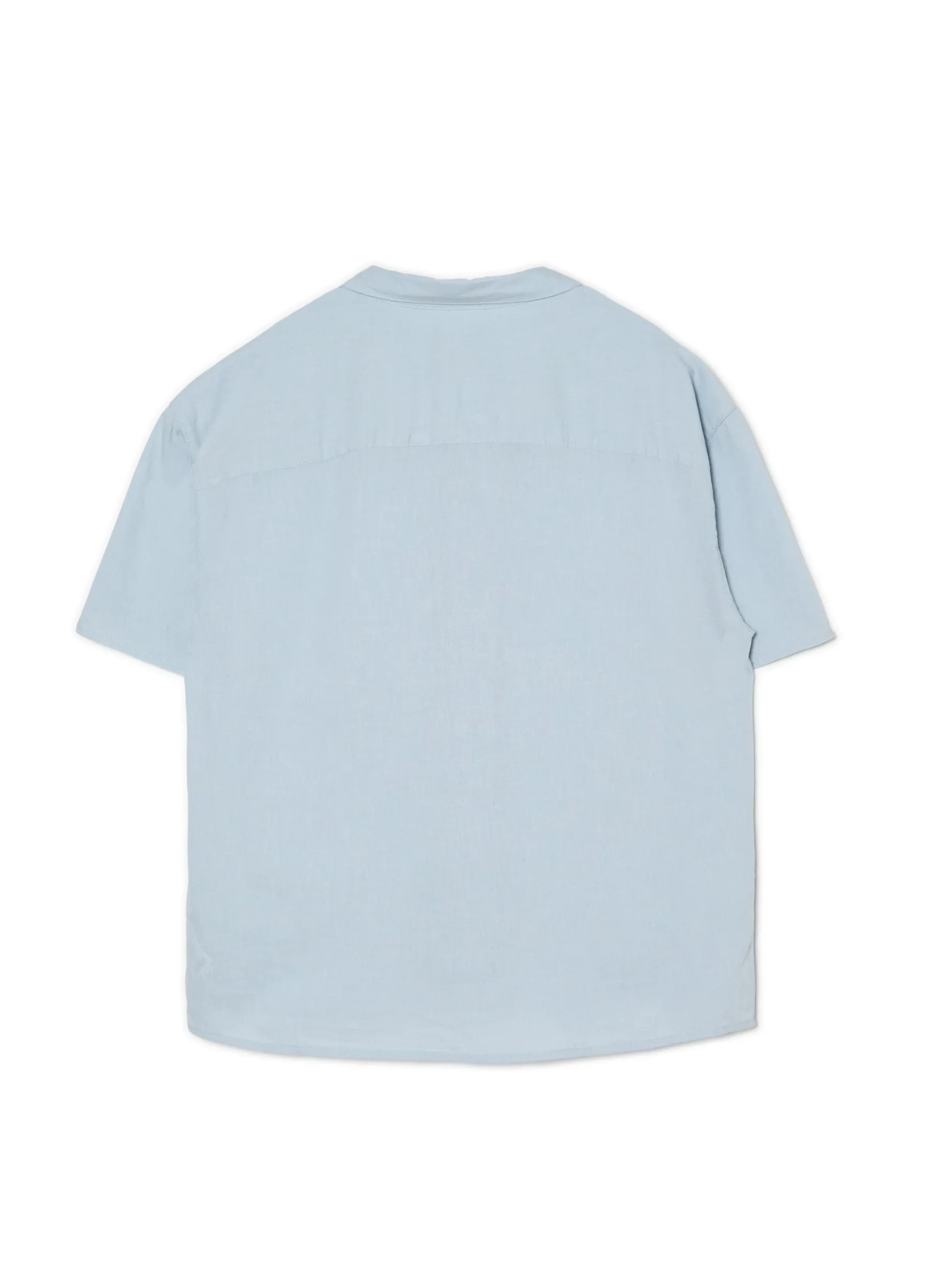 Męska niebieska koszula uszyta z materiału o dużej zawartości bawełny. Prosty kołnierzyk, regularny krój i krótkie rękawy sprawiają, że jest to idealny model nie tylko na okazjonalne wyjścia.