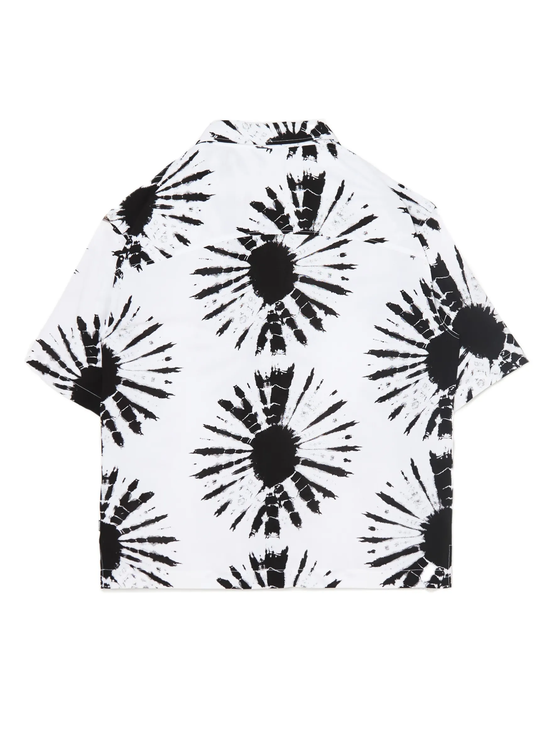 Lekka biało-czarna męska koszula, uszyta w 100% z wiskozy. Idealna na lato! lekki materiał z wiskozą wygodny fason comfort krótkie rękawy kubański kołnierzyk nadruk all over