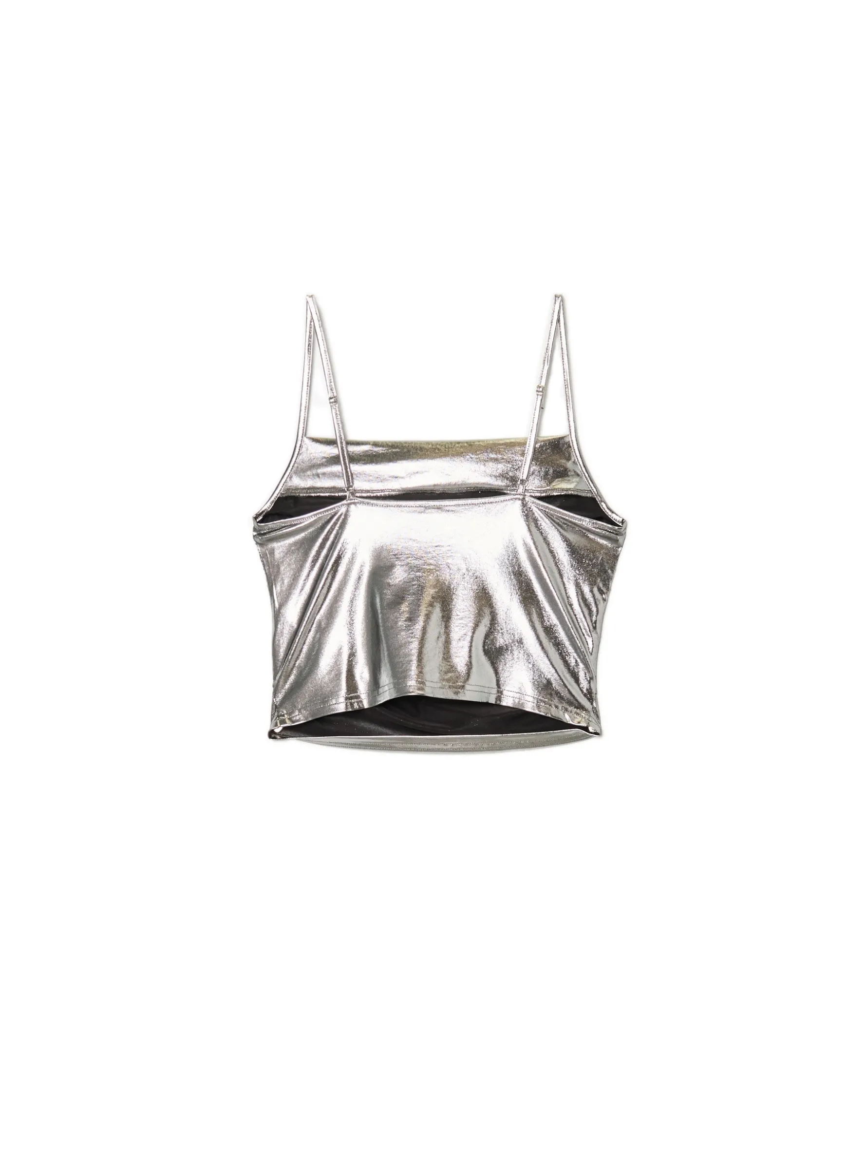 Cropp Koszulki, Topy*Błyszczący srebrny top jasnyszary