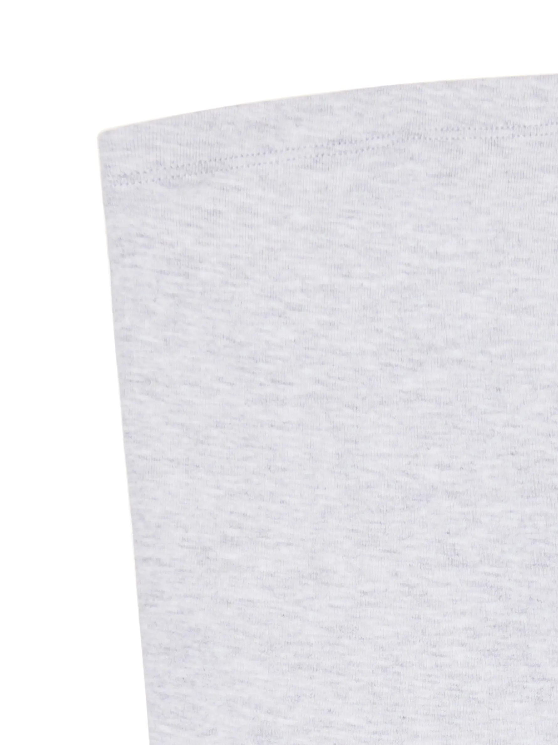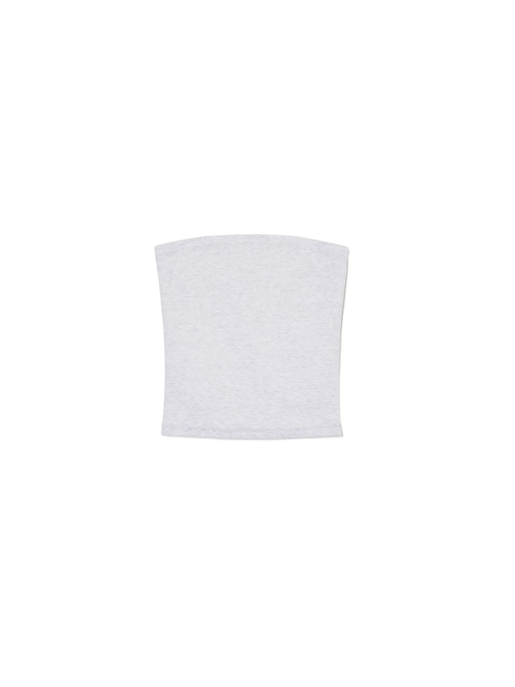 Dopasowany top typu tuba, uszyty z dzianiny z dodatkiem elastycznych włókien w jasnoszarym odcieniu. Unikatowy dodatek zarówno do dresu, jak i jeansu. Sprawdź! dzianinowy materiał z bawełną dopasowany krój podkreślający sylwetkę silikonowa taśma przy dekolcie Wzrost modelki: 172 cm
