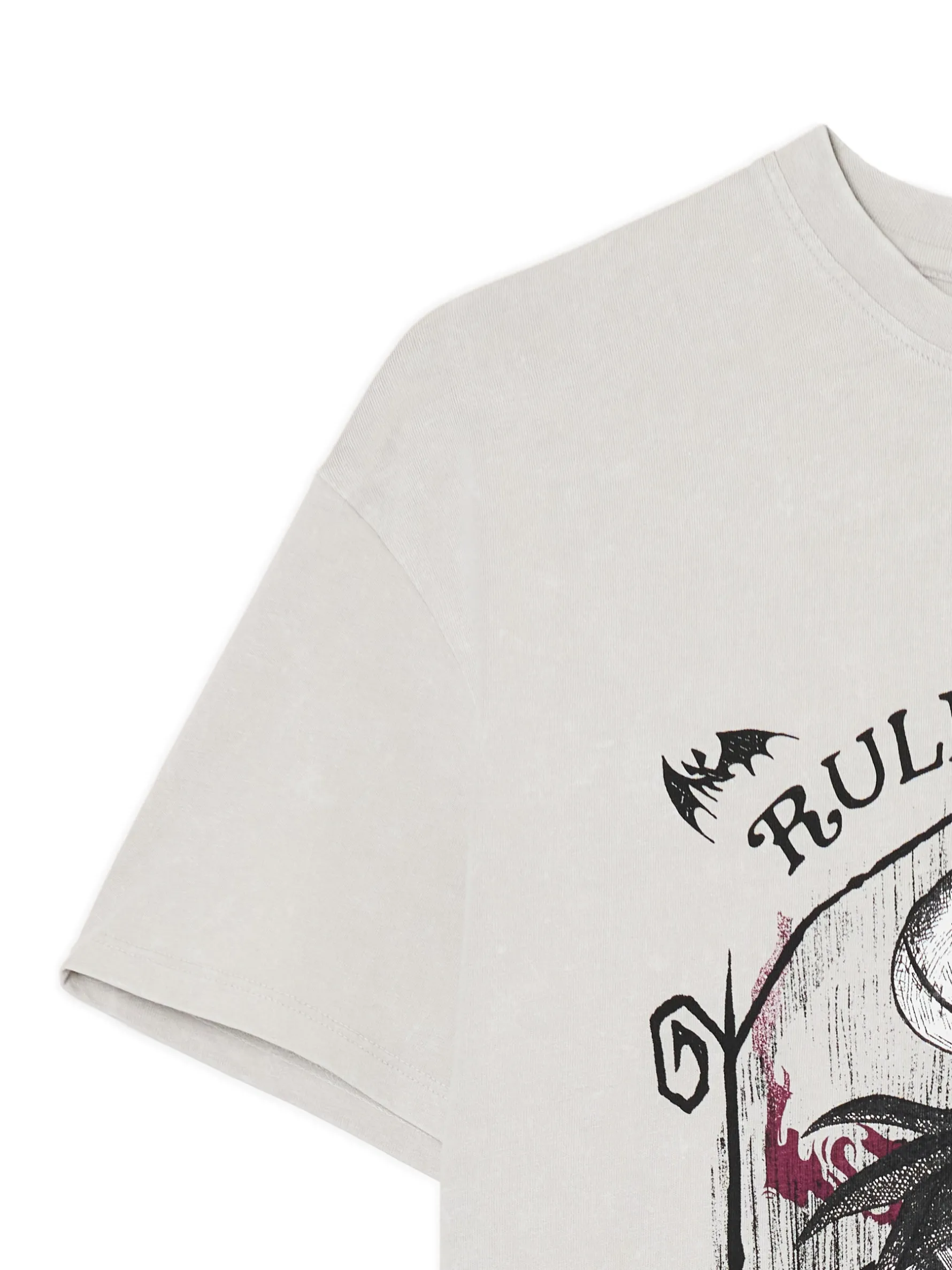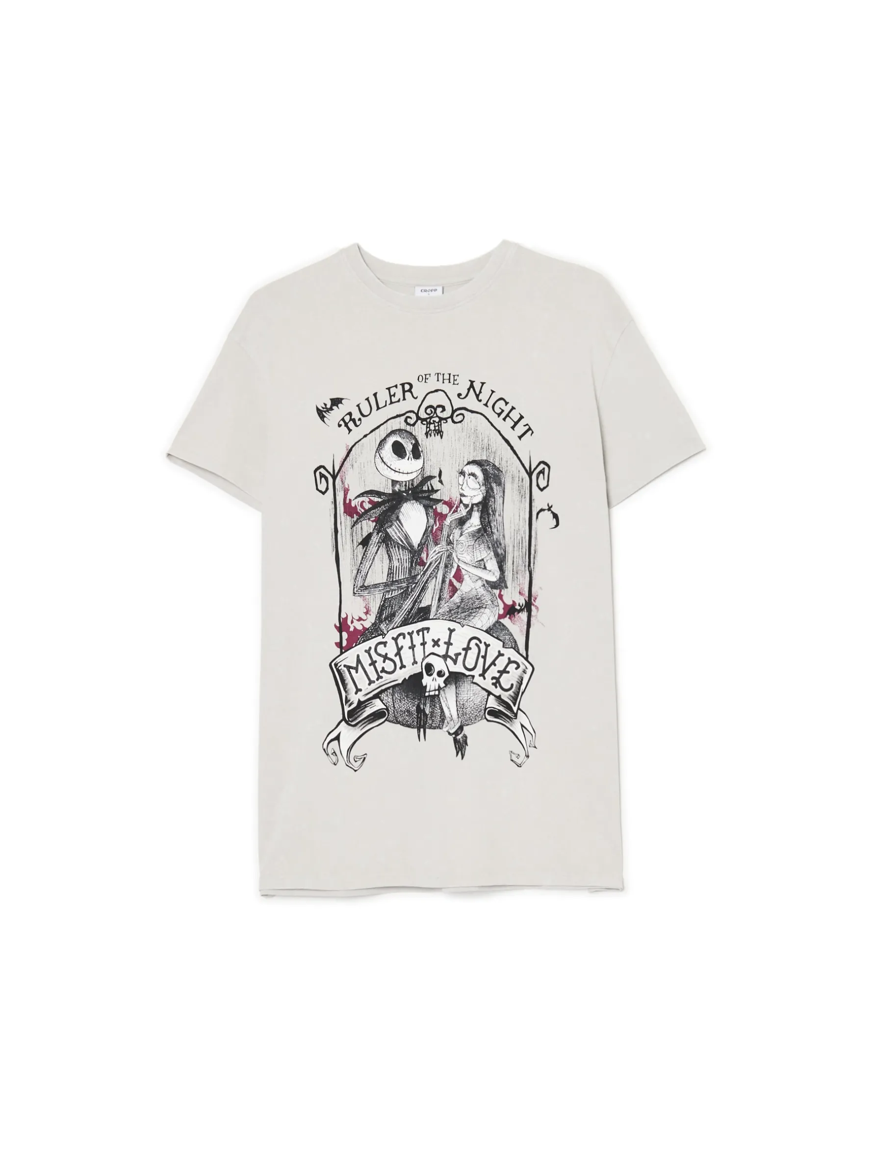 Bawełniana damska koszulka w jasnoszarym odcieniu na before lub after halloweenowy. Na przodzie grafika inspirowana disneyowskim filmem Tima Burtona „Miasteczko Halloween”. Buaaah! 100% bawełny oversizowy krój okrągły dekolt z lamówką krótkie rękawy delikatnie obniżona linia ramion nadruk z motywem Halloween Wzrost modelki: 172 cm ©Disney