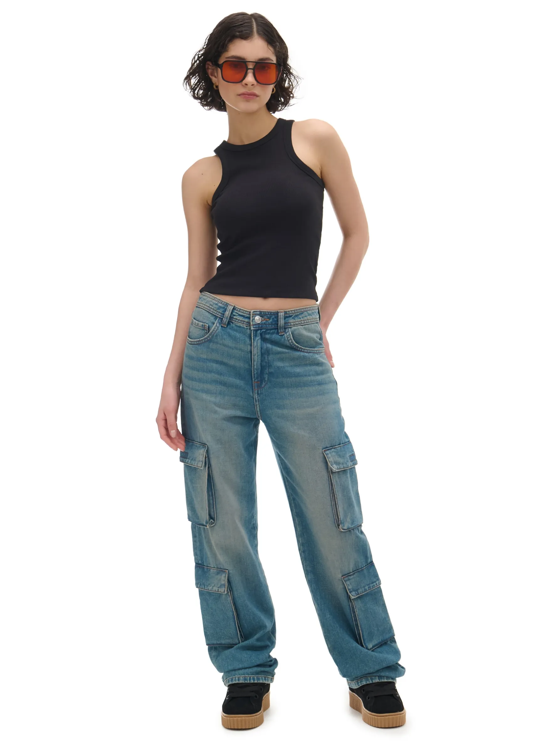 Cropp Koszulki, Topy*prążkowany top czarny