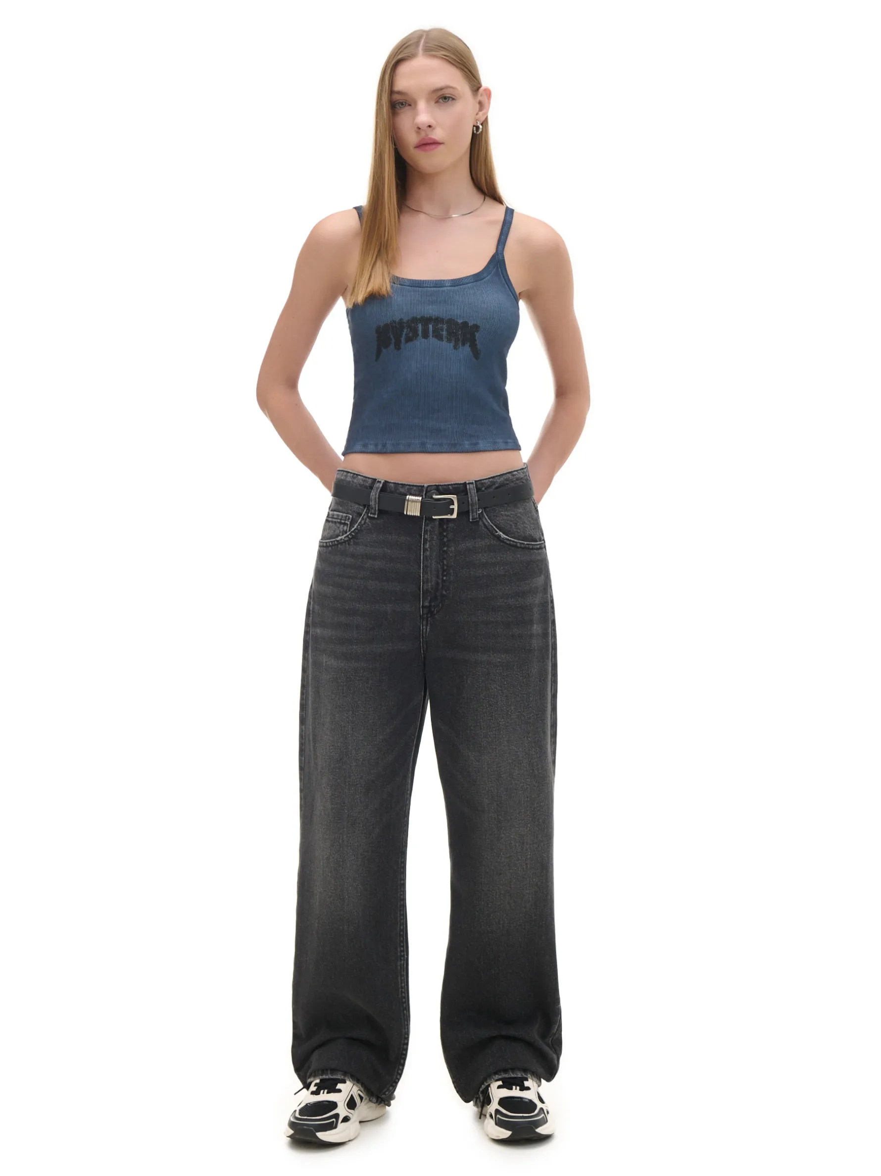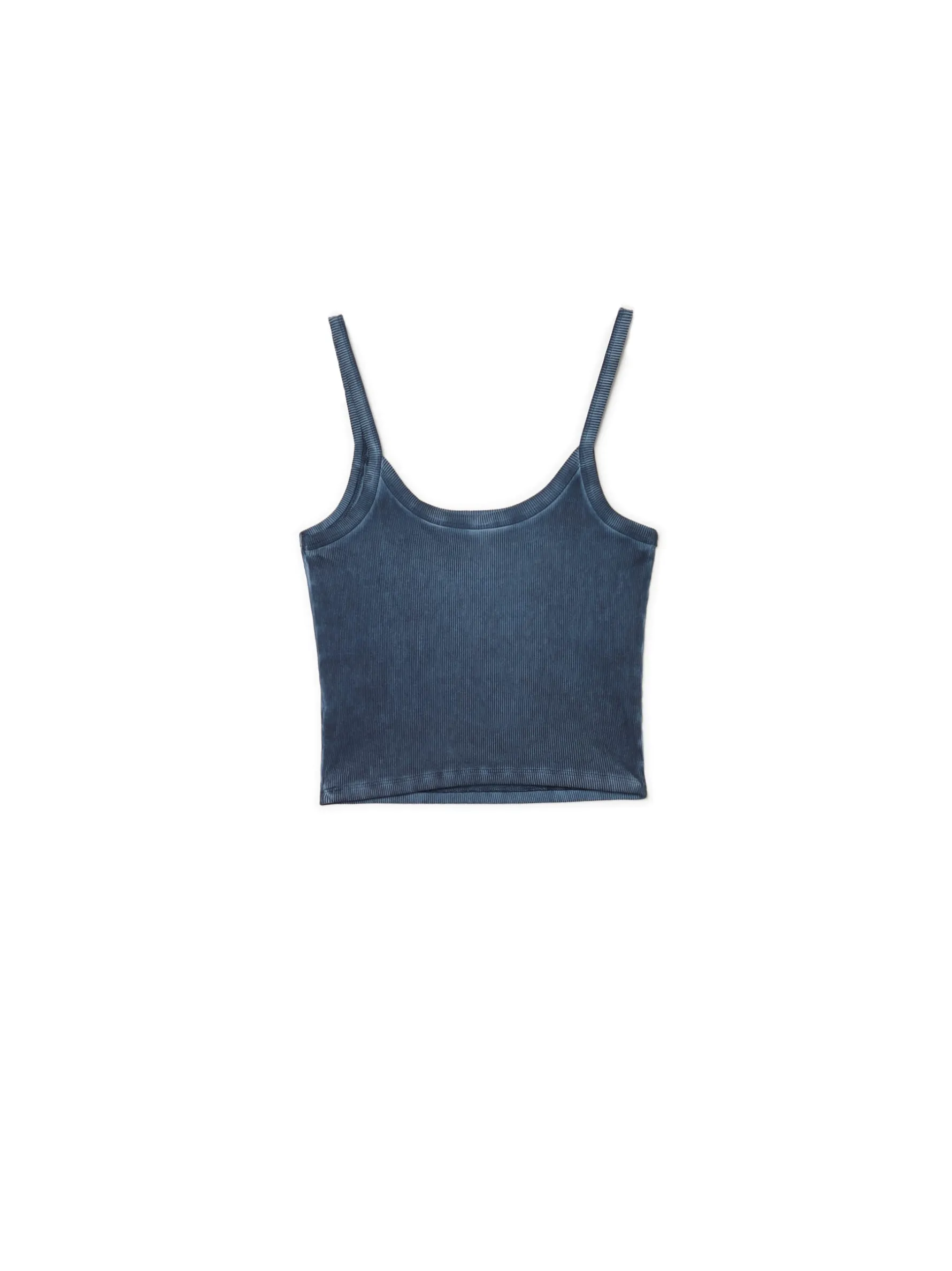 Damski top na ramiączkach, uszyty z mieszanki bawełny i elastycznych włókien. Idealnie dopasowuje się do sylwetki. Efekt sprania i ten oryginalny nadruk nadają mu streetowego charakteru. bawełna z dodatkiem elastycznych włókien dopasowany krój podkreślający sylwetkę głęboki dekolt cienkie ramiączka efekt sprania na całości nadruk z przodu