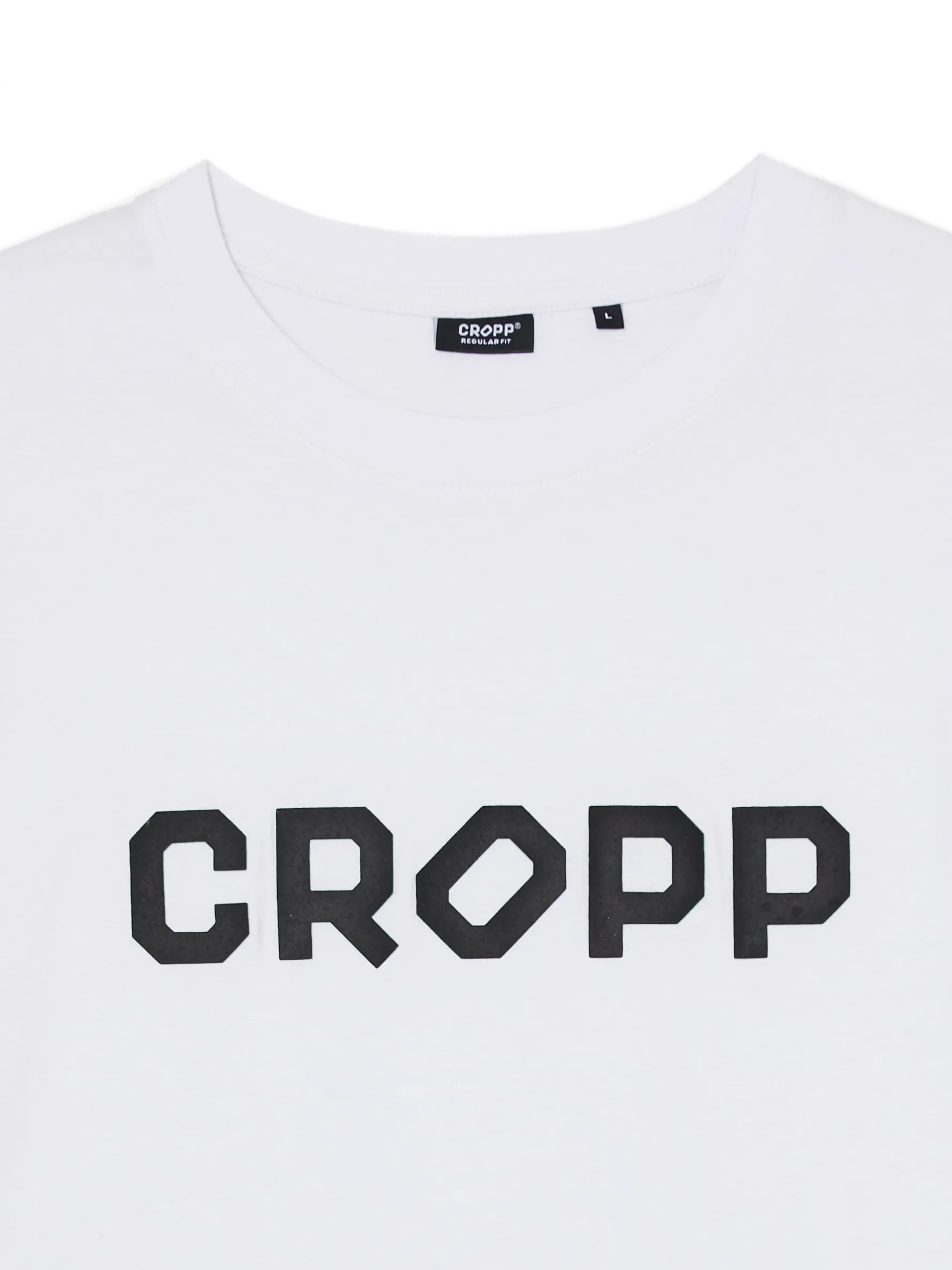 Biała męska koszulka o kroju regular, uszyta z bawełny. Z przodu nadruk tekstowy CROPP. 100% bawełny regularny krój uniwersalny basicowy styl krótkie, swobodne rękawy Wzrost modela: 184 cm