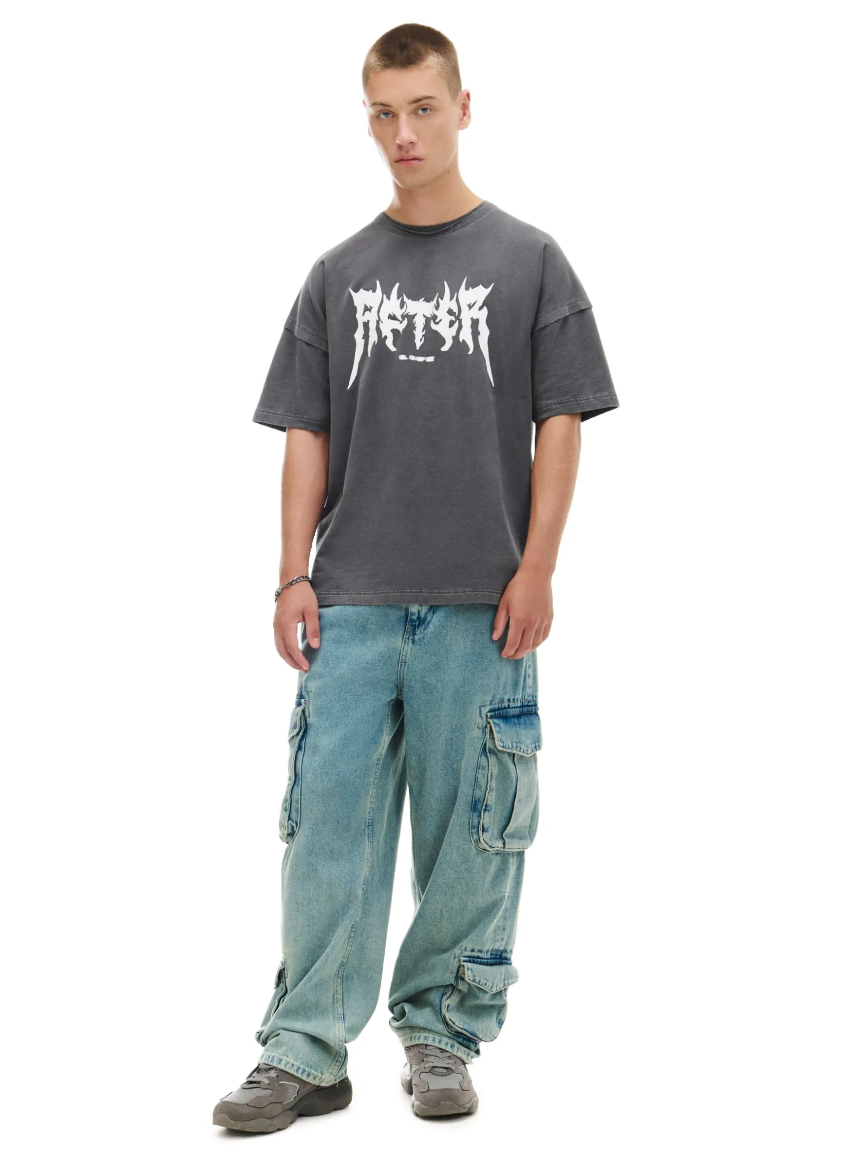 Męski T-shirt, uszyty z bawełny. Podkręć swój vibe i włącz go do swojej garderoby! 100% bawełny swobodny, luźny krój krótkie rękawy napis z przodu Wzrost modela: 185 cm