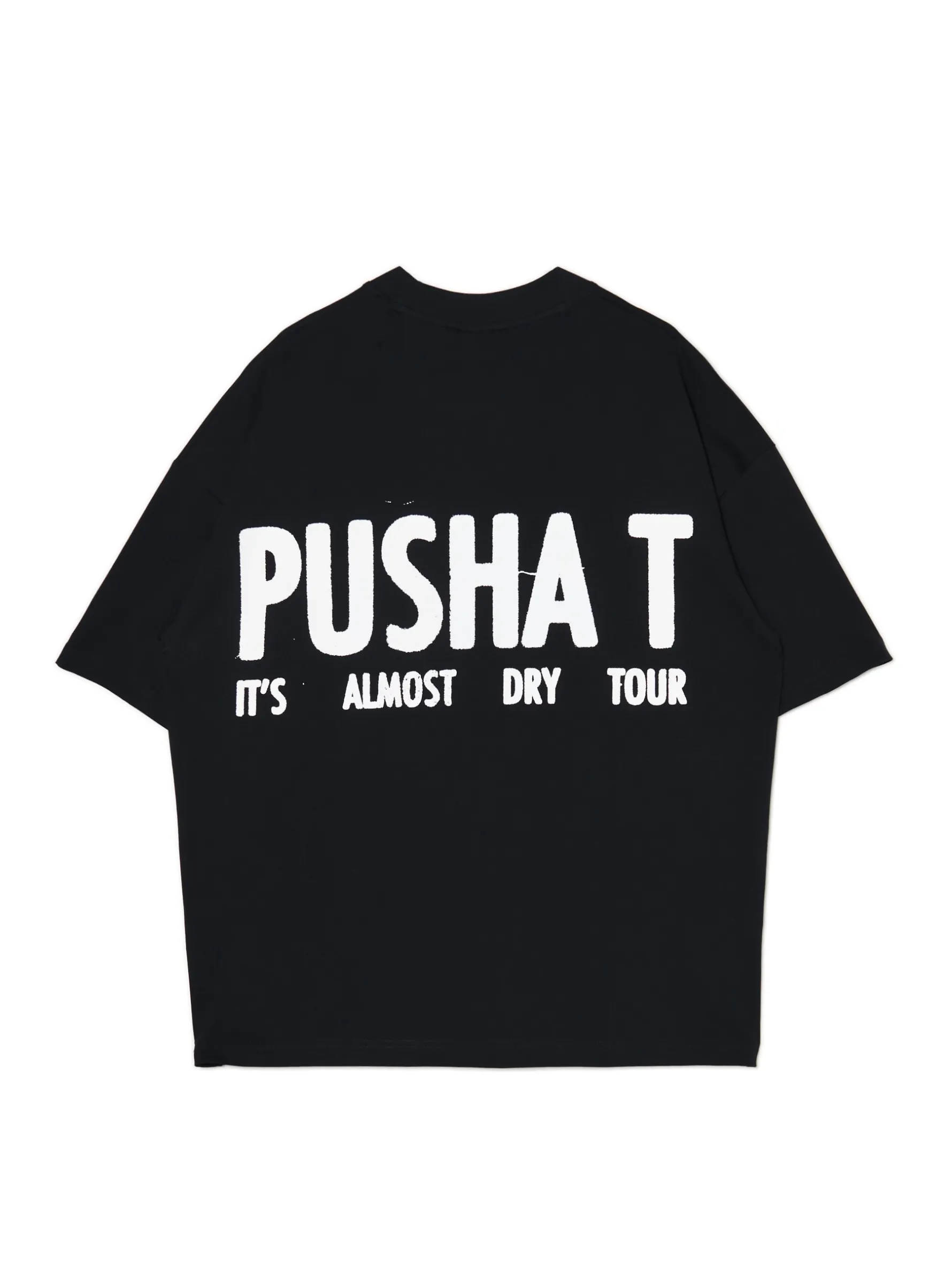 T-shirt z krótkim rękawem o kroju boxy uszyty z bawełnianej dzianiny z motywem trasy koncertowej „It’s Almost Dry Tour” rapera Pusha T. 100% bawełny obszerny krój boxy krótkie, szerokie rękawy oryginalny print duży tekstowy nadruk z tyłu Model prezentuje produkt w rozmiarze M/L. Wzrost modela: 185 cm © Bravado