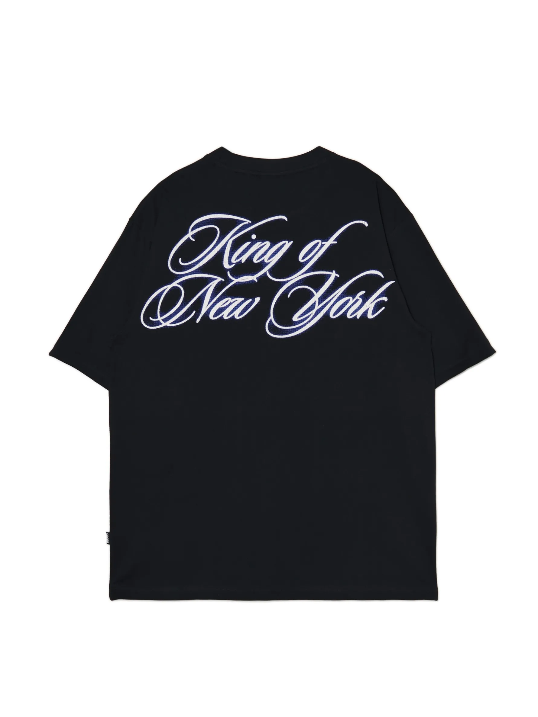 Męska bawełniana koszulka w kolorze czarnym z krótkim rękawem. Na przodzie duży nadruk z wizerunkiem Pop Smoke’a, a na plecach ozdobny slogan. Who is the King? 100% bawełny wygodny krój comfort krótkie, swobodne rękawy duży napis na plecach z przodu nadruk z raperem Pop Smoke Wzrost modela: 185 cm TM© Pop Smoke LLC. Under License to Bravado International Group. All Rights Reserved.
