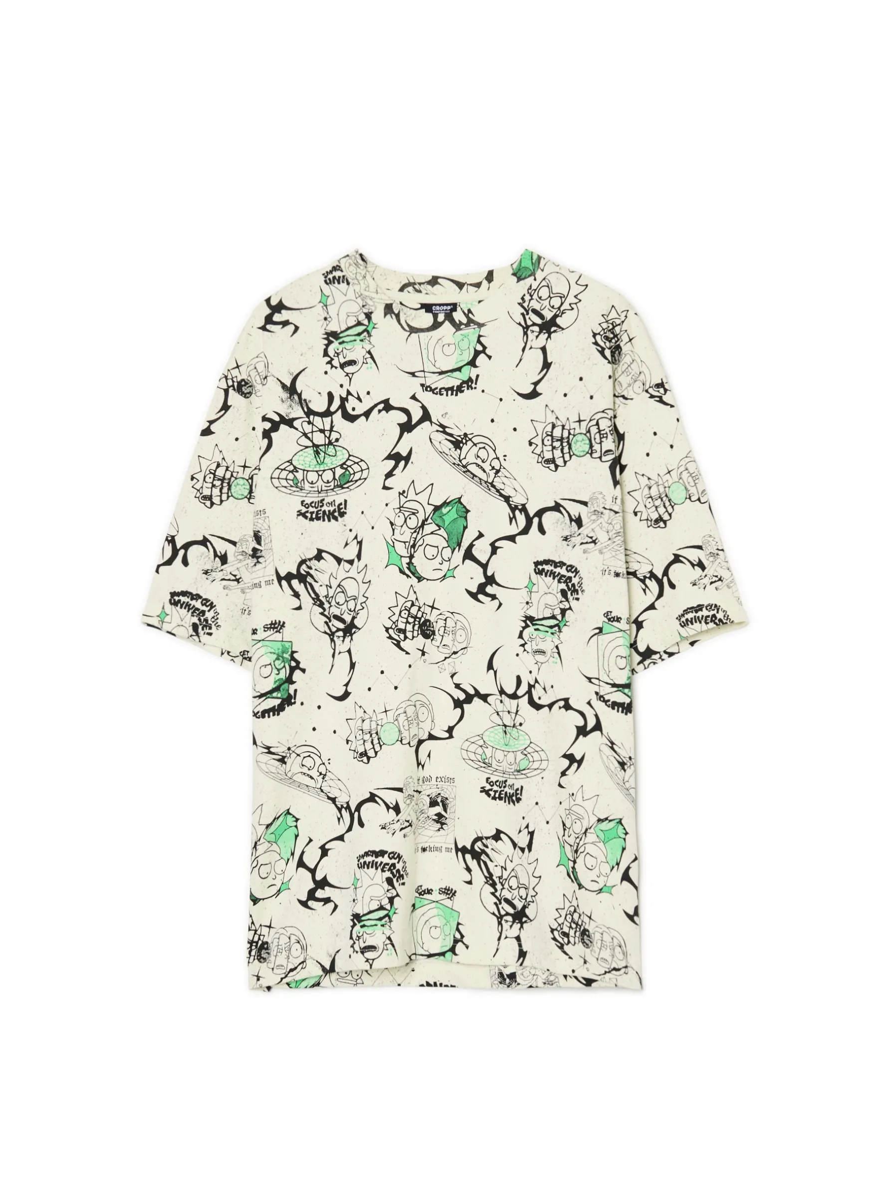 Męska bawełniana koszulka o kroju comfort z nadrukiem na całości z bohaterami serialu „Rick i Morty”. W tym itemie wzrasta poziom IQ, potwierdzone info! 100% bawełny wygodny krój comfort okrągły dekolt z lamówką krótkie, swobodne rękawy nadruk z bohaterami serialu Rick and Morty all over RICK AND MORTY and all related characters and elements © & TM Cartoon Network. WB SHIELD: © & TM WBEI. (s24)
