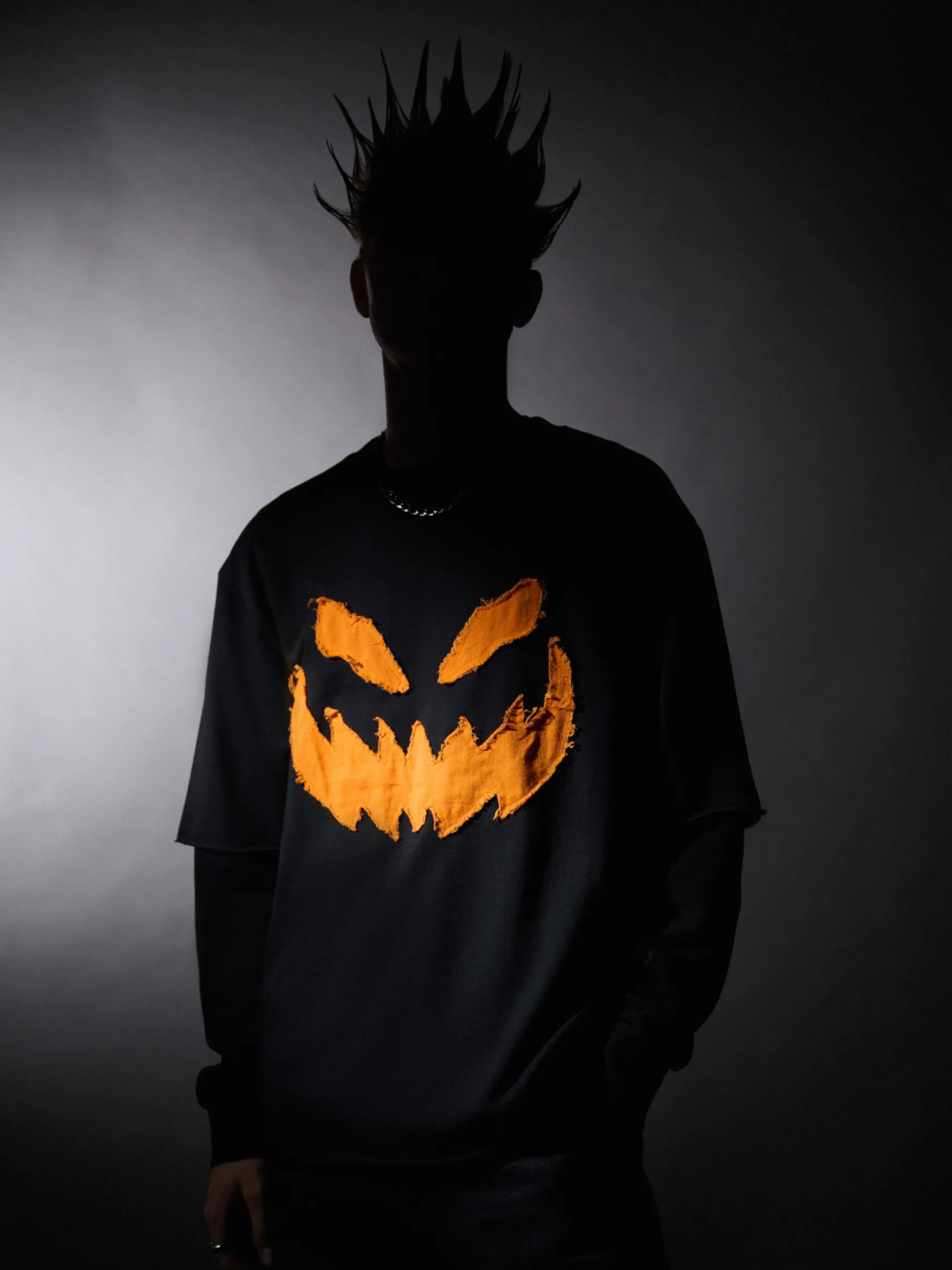 Czarny bawełniany męski T-shirt z krótkim rękawem, idealny jako dodatek do stylizacji na zabawę Halloweenową. Nada się też podczas rozdawania cukierków lub psikusów. Buaaa! 100% bawełny wygodny krój comfort krótkie rękawy okrągły dekolt surowe wykończenie brzegów ozdobne naszywki z motywem Halloween
