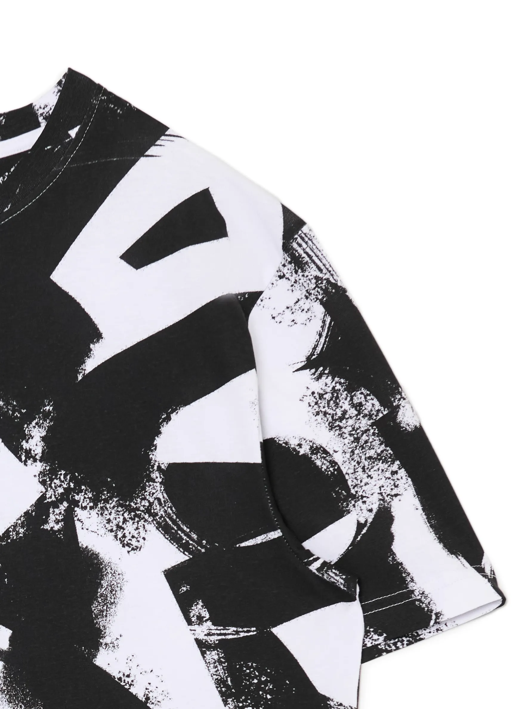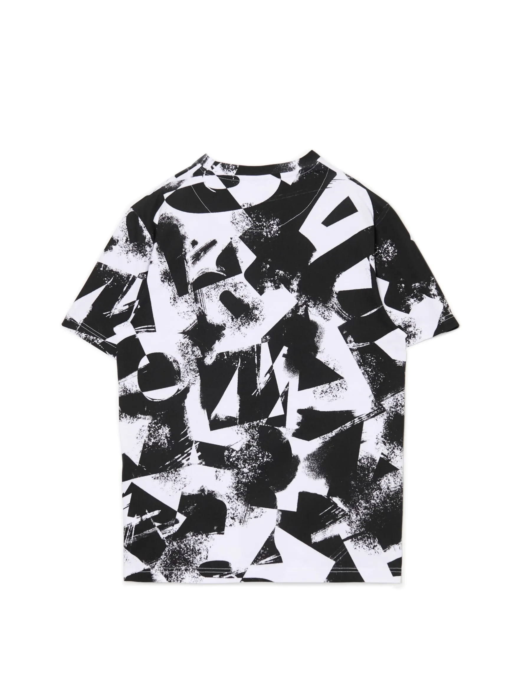 Biało-czarna męska koszula, uszyta w 100% z bawełny. krój regular krótkie rękawy na całości nadruk z abstrakcyjnym motywem