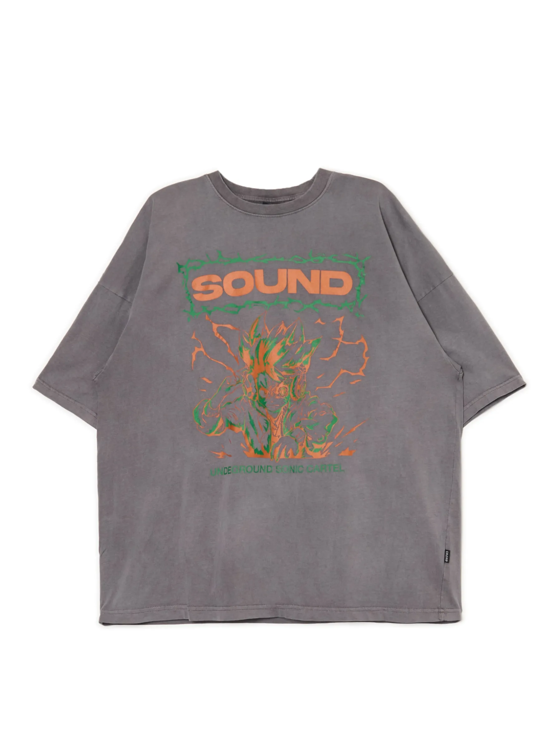 Męska bawełniana koszulka o kroju oversize z autorskim nadrukiem w muzycznym wydaniu. Miksuj dowolnie z ulubionymi szortami! 100% bawełny krój oversize krótkie rękawy oryginalny print Model prezentuje produkt w rozmiarze M/L. Wzrost modela: 185 cm