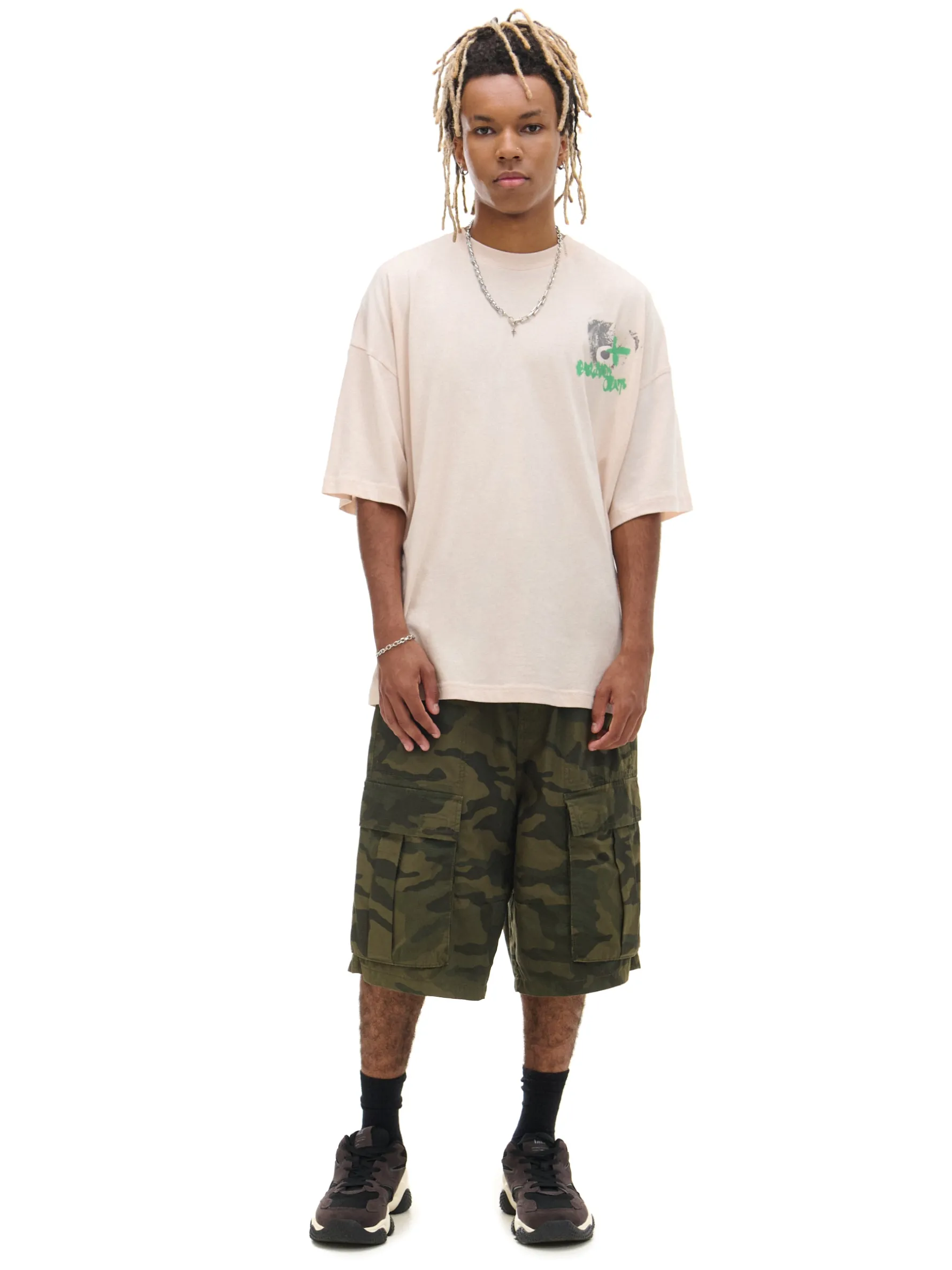 Bawełniany męski T-shirt z krótkim rękawem i nadrukiem po obu stronach z motywem pluszowego misia. 100% bawełny obszerny krój boxy krótkie, szerokie rękawy mały nadruk na piersi, duży nadruk na plecach oryginalny print