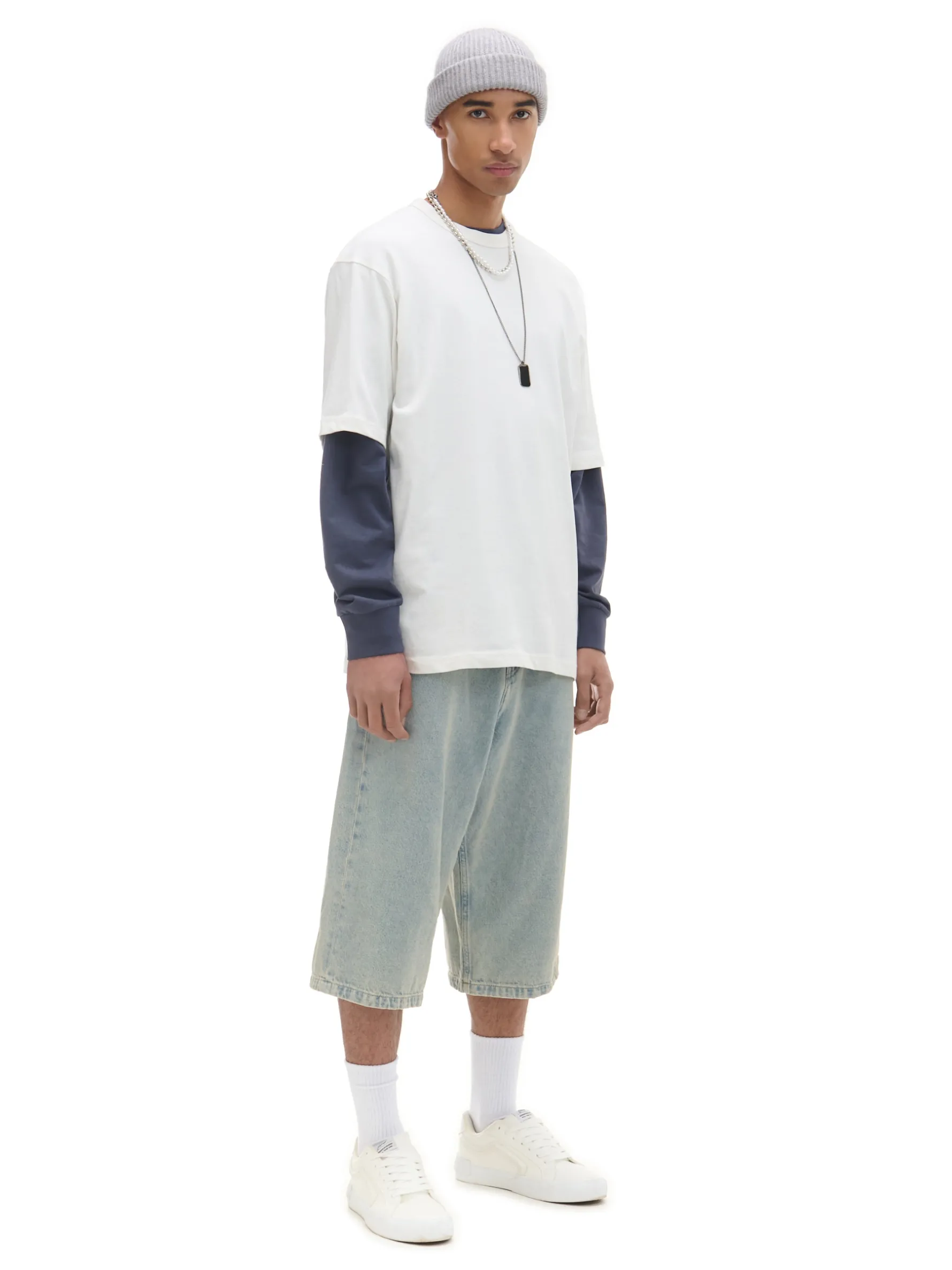 Męska koszulka o kroju basic z krótkim rękawem, uszyta z gładkiej, bawełnianej dzianiny. 100% bawełny koszulka typu basic luźny krój z obniżoną linią ramion krótkie, szerokie rękawy Wzrost modela: 185 cm