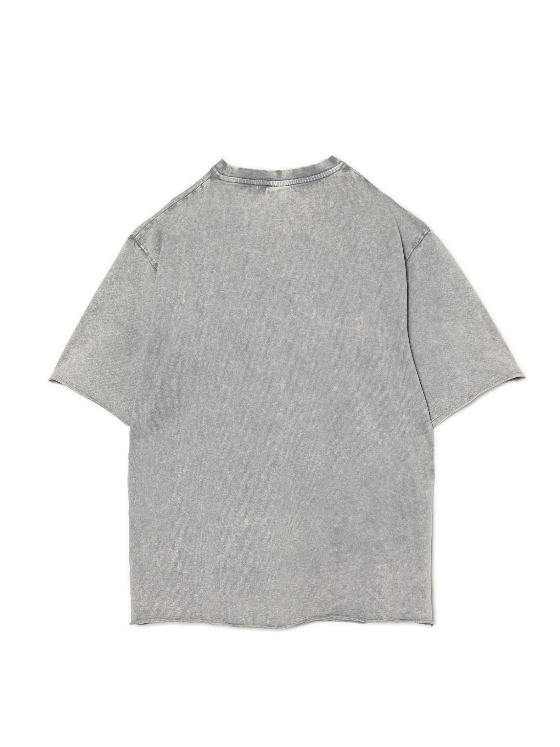Szary męski T-shirt, uszyty z bawełny. krój comfort krótkie rękawy na całości efekt acid wash ozdobnie wykończony dolny brzeg