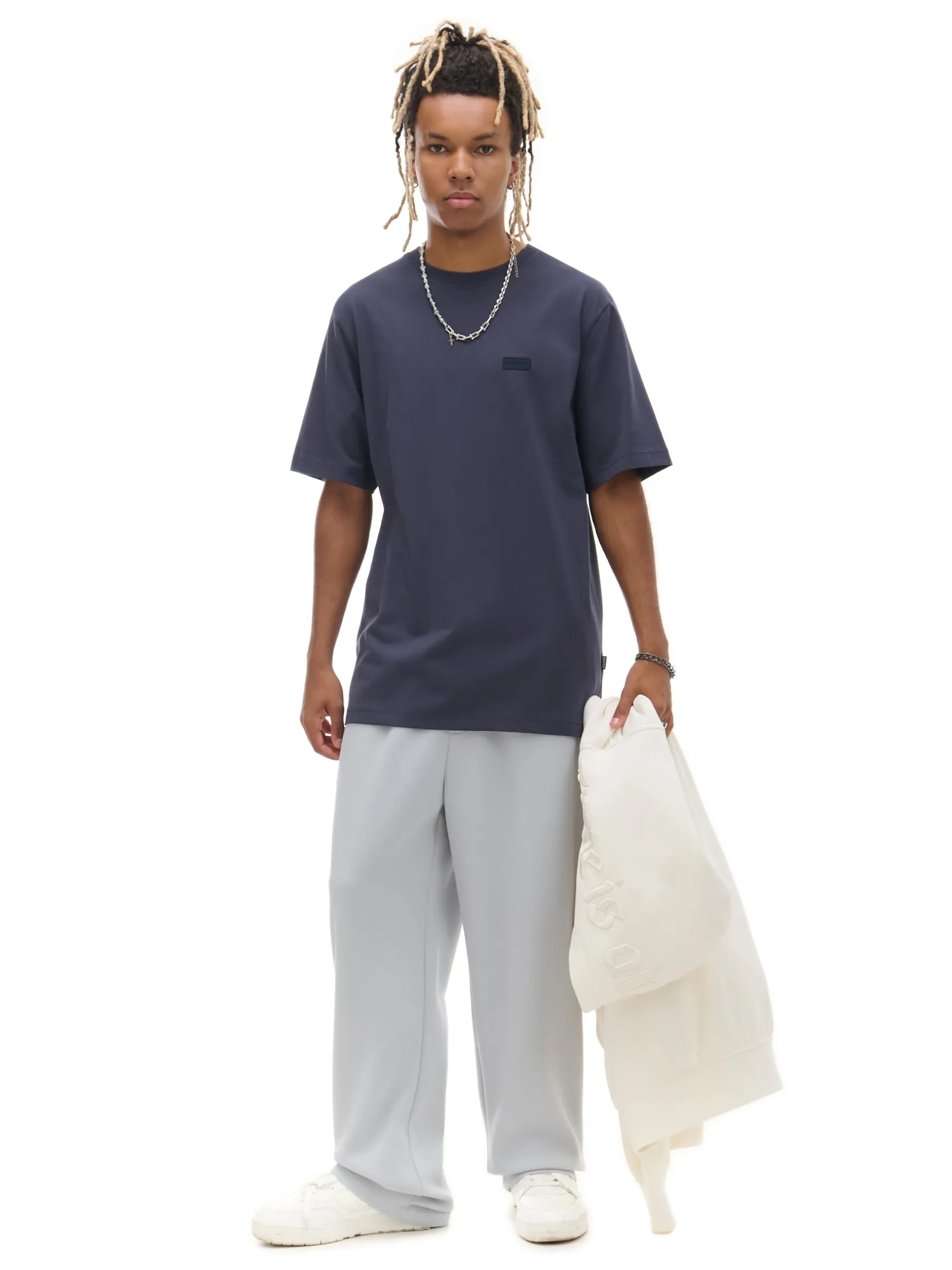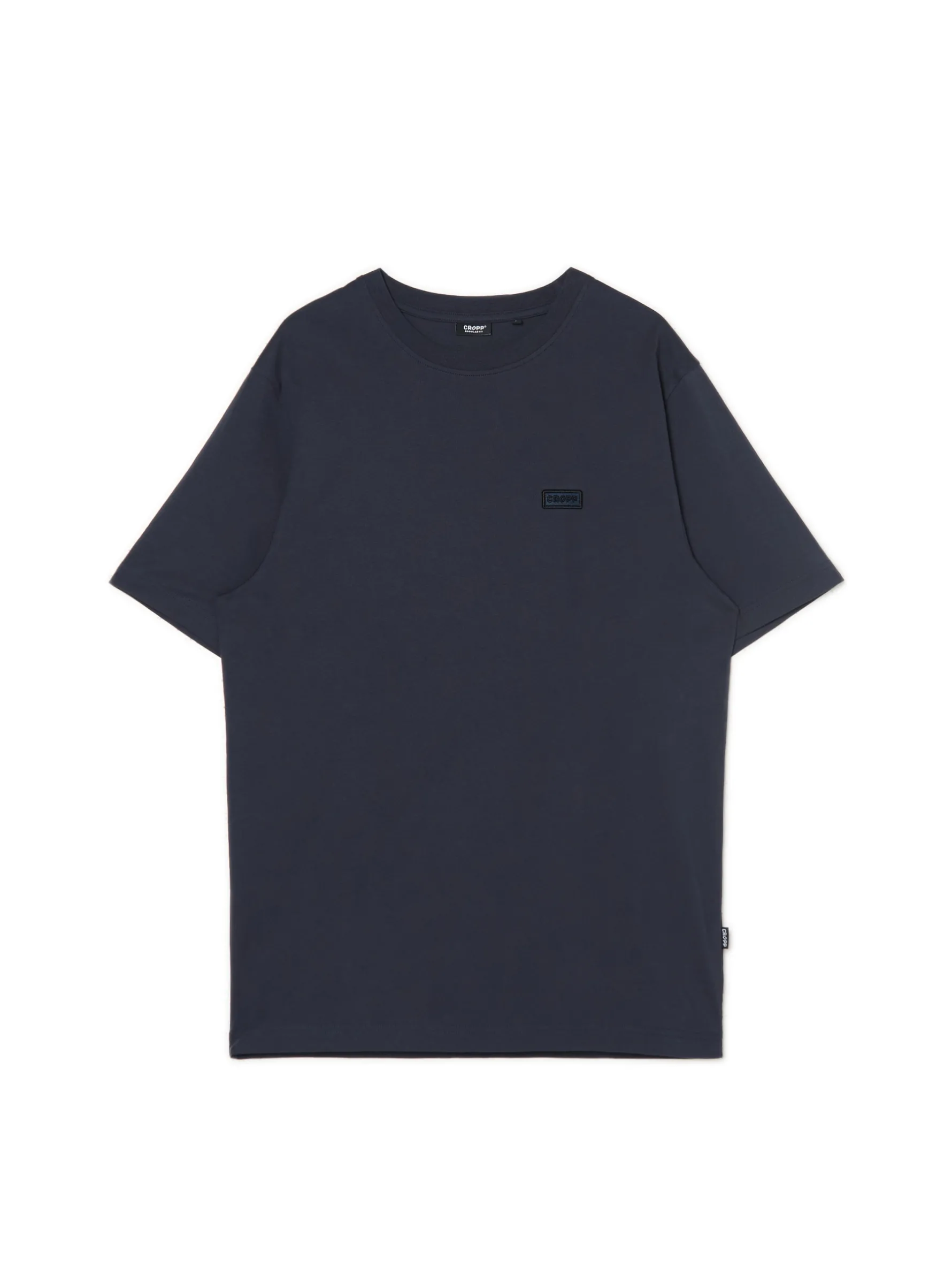 Męska koszulka w kolorze szarym, uszyta w 100% z bawełny. regularny krój krótkie rękawy uniwersalny basicowy styl naszywka z napisem Cropp