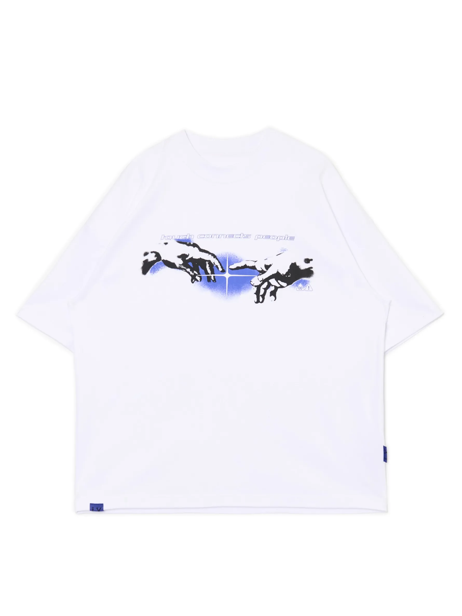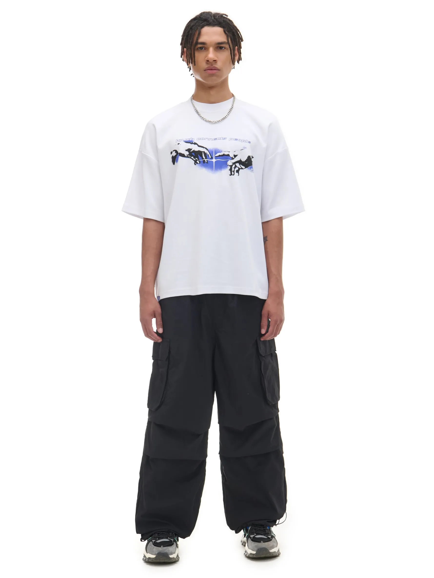 Męska biała koszulka, uszyta w 100% z bawełny. Let the Baltic Games begin! obszerny krój boxy krótkie rękawy z przodu nadruk i napis