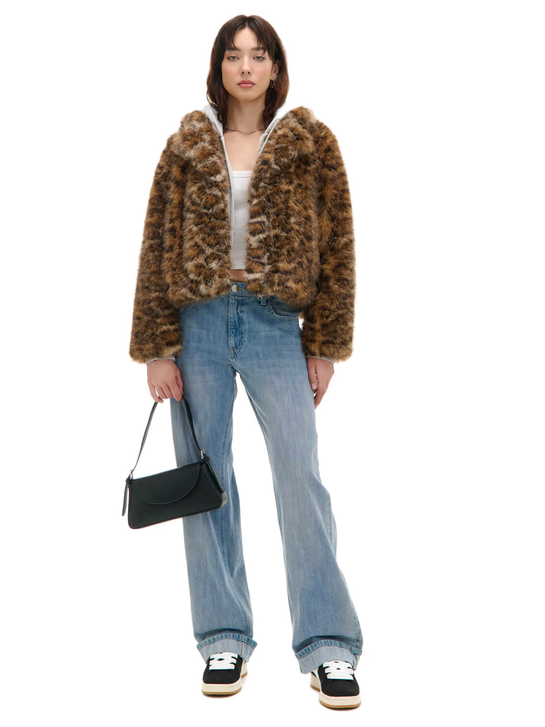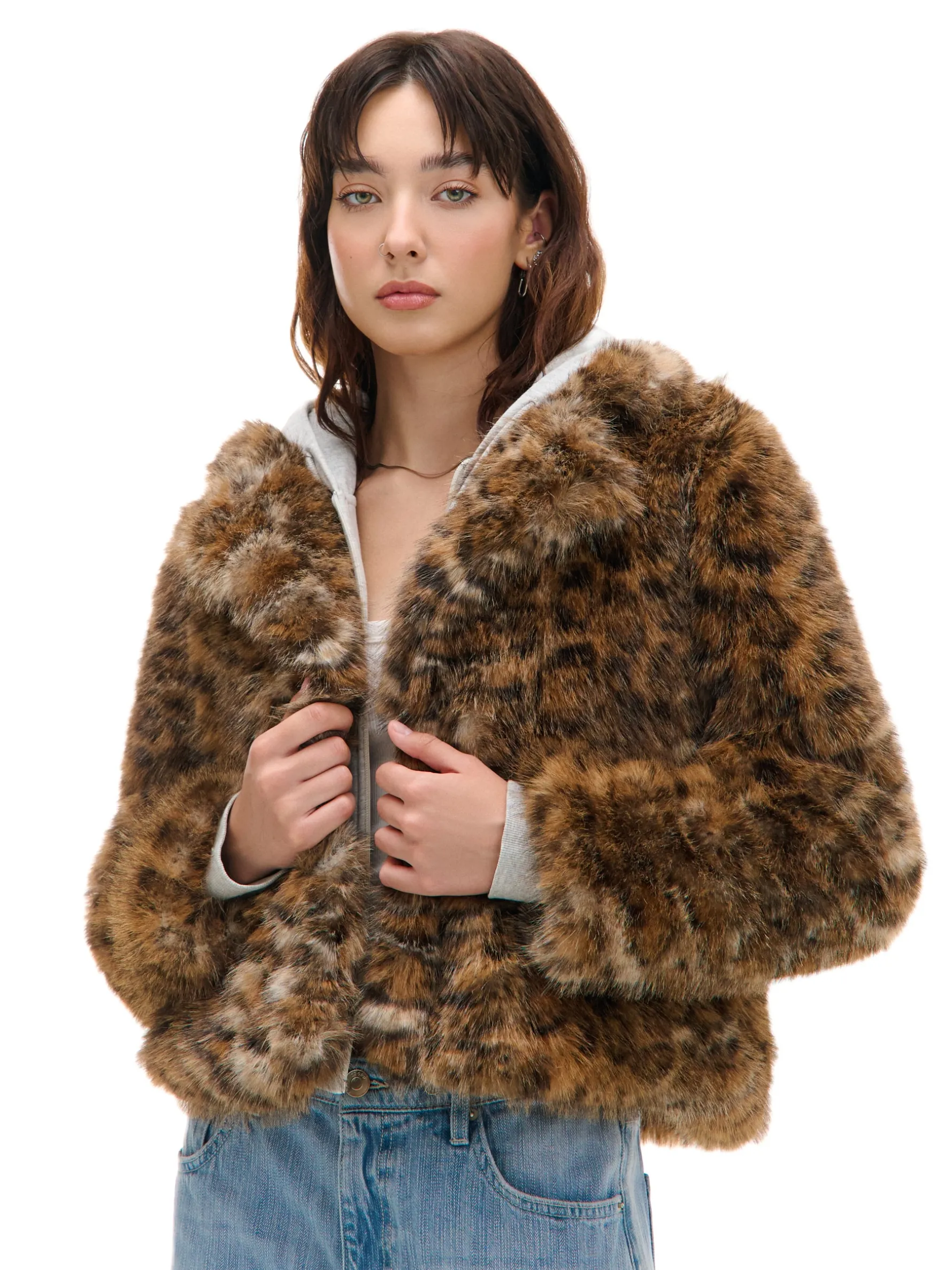 Cropp Kożuszki, Futerka|Kurtki, Płaszcze*Kurtka z imitacji futra w panterkę wielobarwny