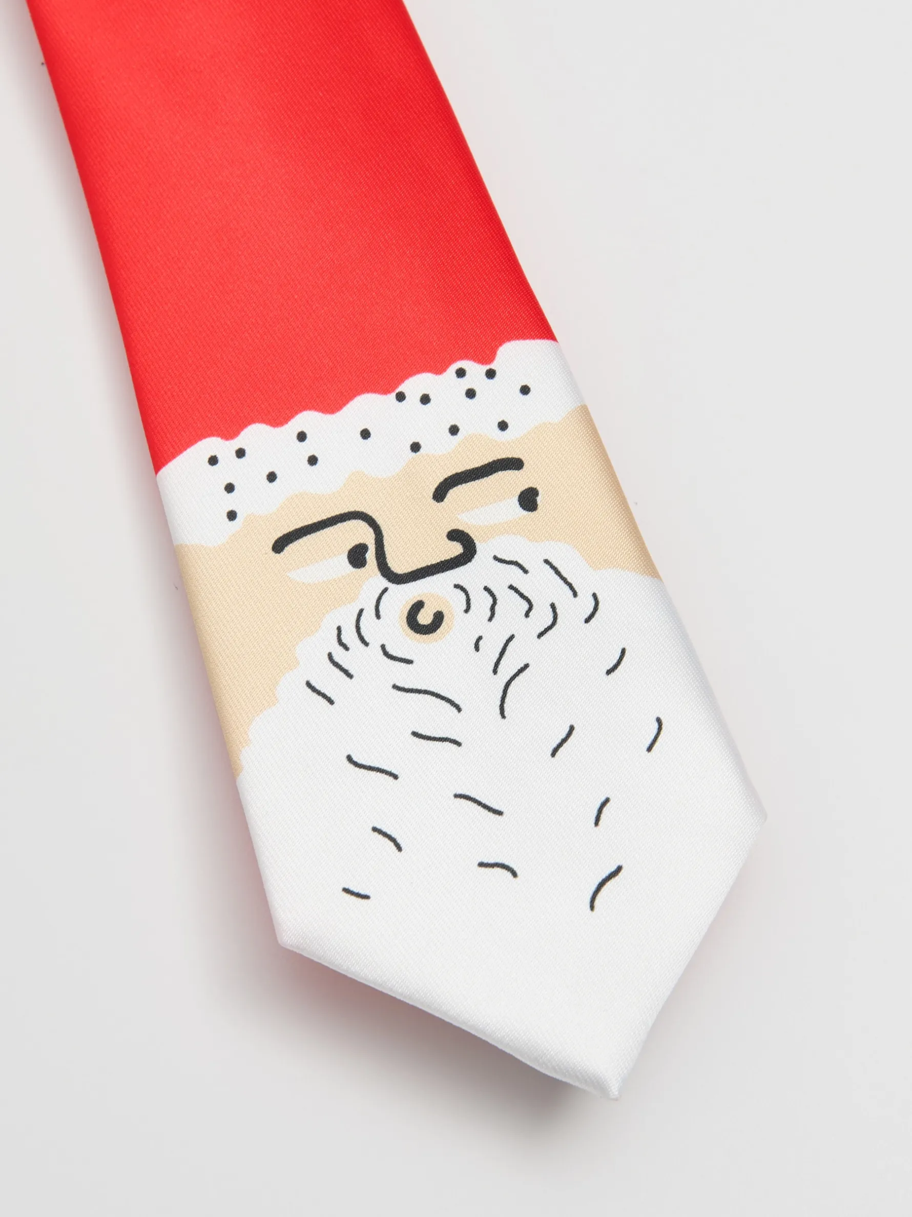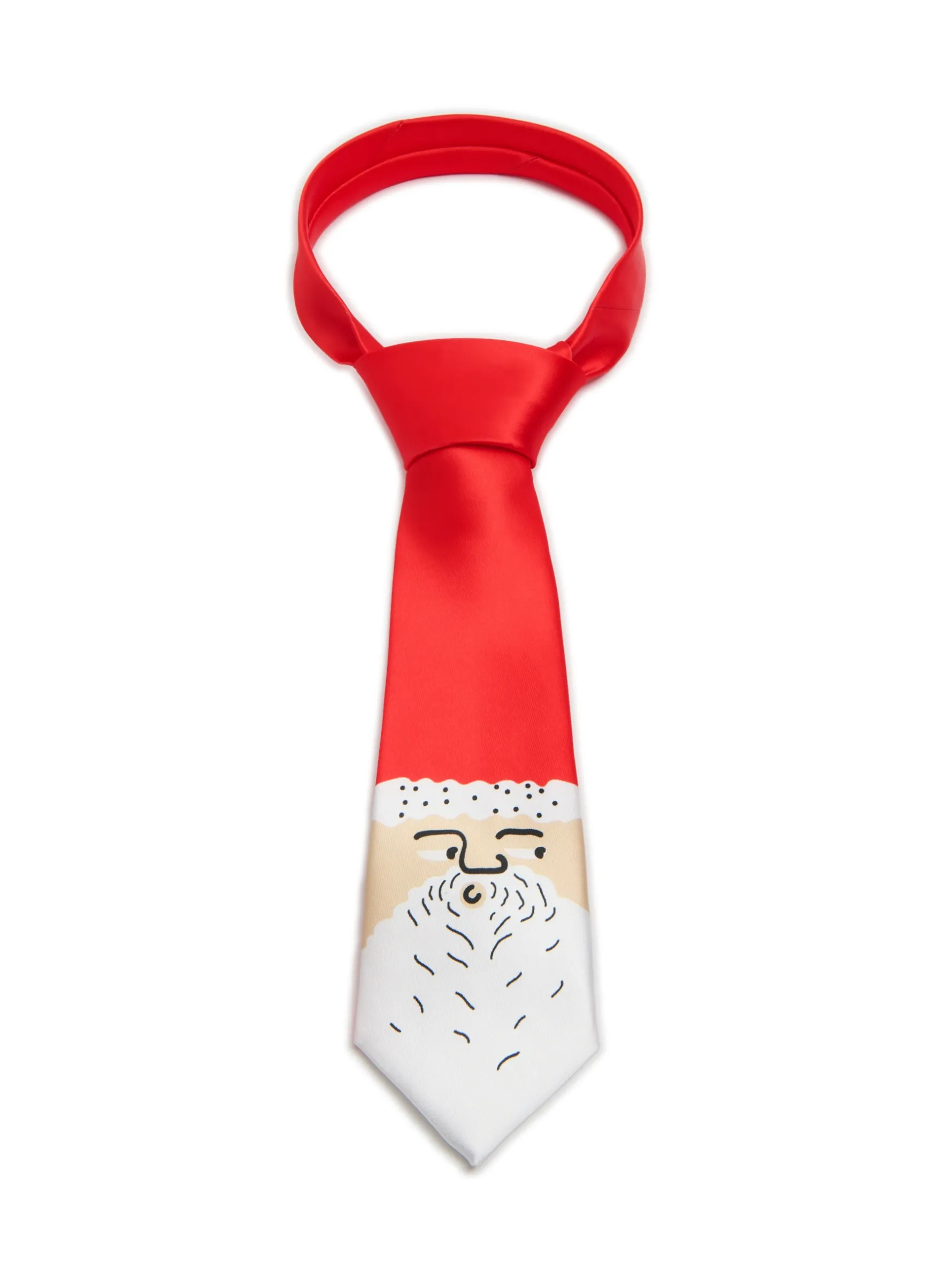 Odpowiedni dodatek do stylizacji na świąteczne posiadówki rodzinne? Mamy dla Ciebie męski krawat w czerwonym kolorze z podobizną Świętego Mikołaja. Jeden klik i item w koszyku!