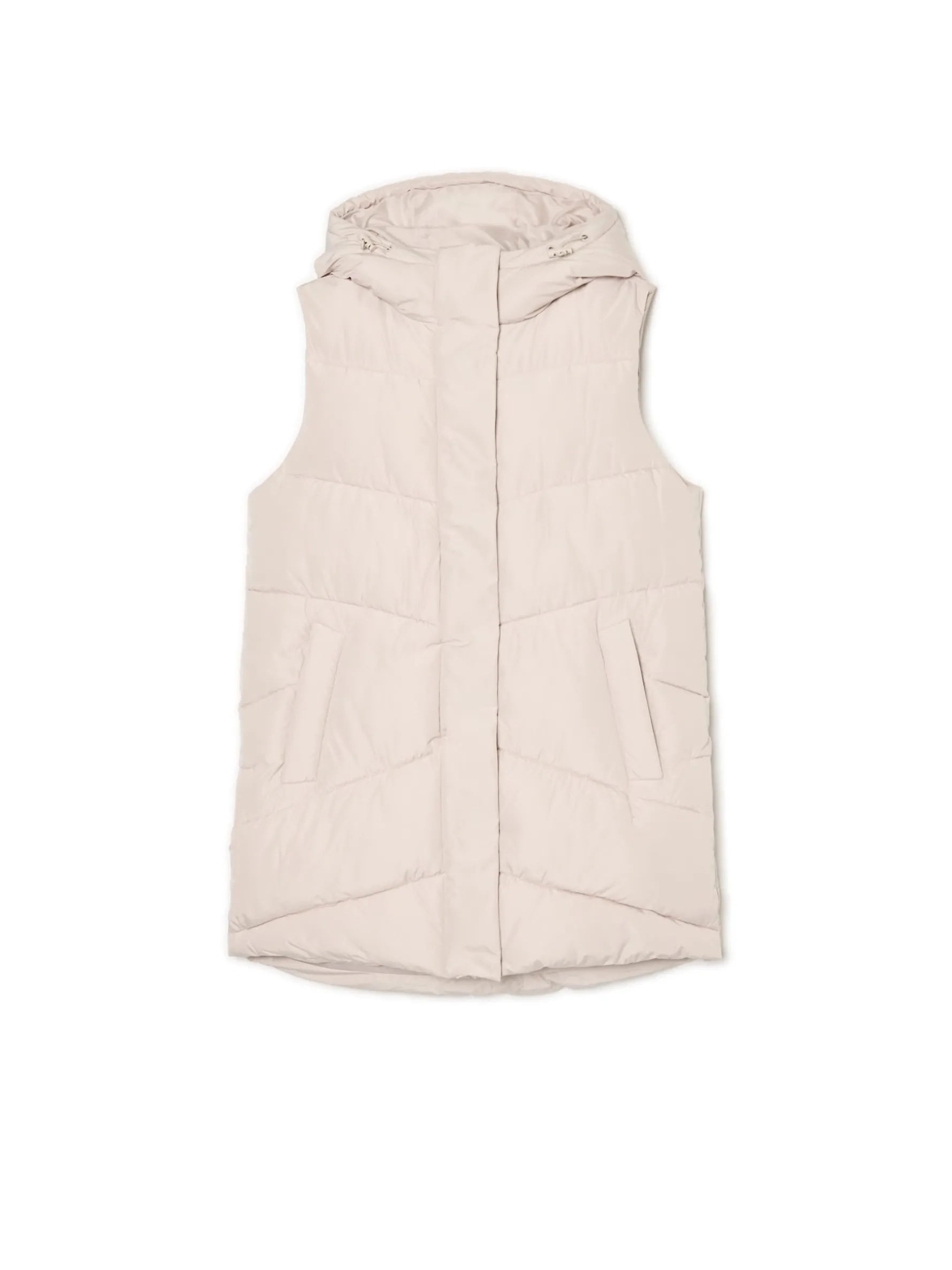 Cropp Kurtki, Płaszcze*Beżowa kamizelka puffer z kapturem beżowy