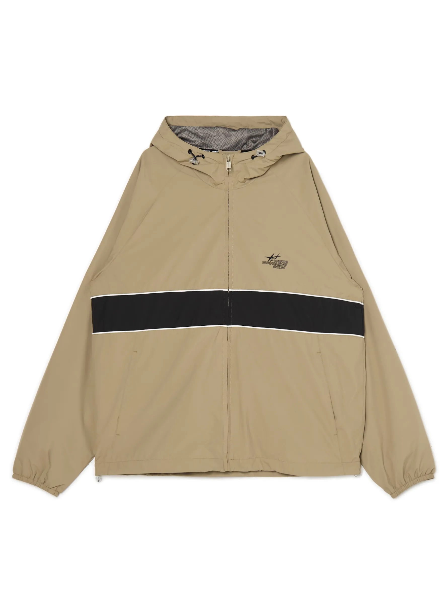 Męska lekka kurtka z kapturem, uszyta z gładkiej beżowek tkaniny. zapięcie na suwak kaptur regulowany za pomocą elastycznych gumek ze stoperami długie rękawy zakończone ściączem z wszytą elastyczną gumką mały nadruk na piersi dolny brzeg regulowany za pomocą elastycznych gumek ze stoperami dwie kieszenie zewnętrzne wewnętrzna kieszeń zapinana na rzep podszewka z lekkiej siateczki mesh Wzrost modela: 185 cm PROTECTION LEVEL 1rn rnKurtka uszyta z tkaniny, której właściwości zapewnią Ci ochronę przed wiatrem. Możesz ją nosić jako lekkie okrycie wierzchnie i łączyć z cieplejszymi ubraniami.