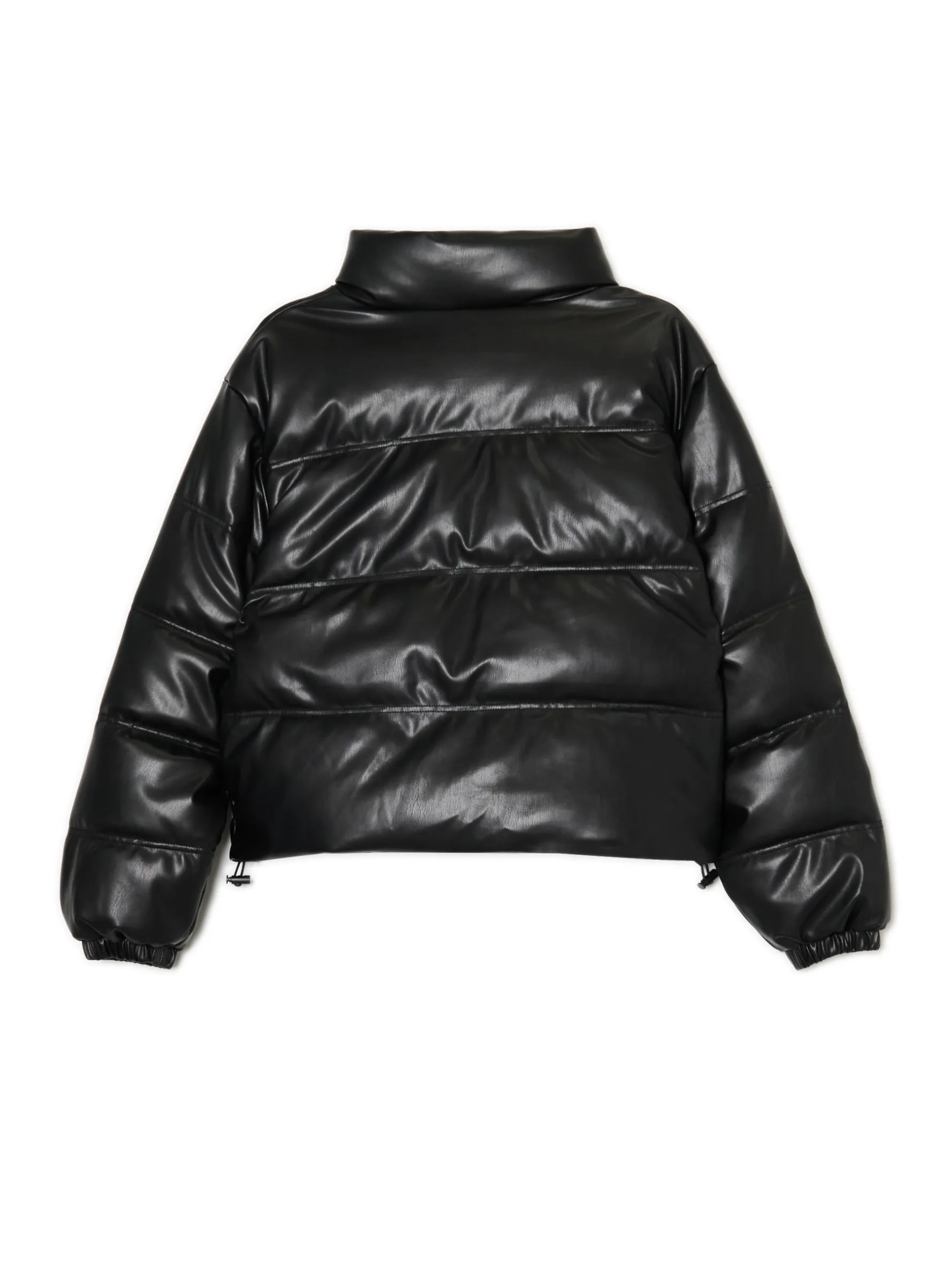 Cropp Kurtki, Płaszcze*Czarna kurtka puffer z efektem skóry czarny