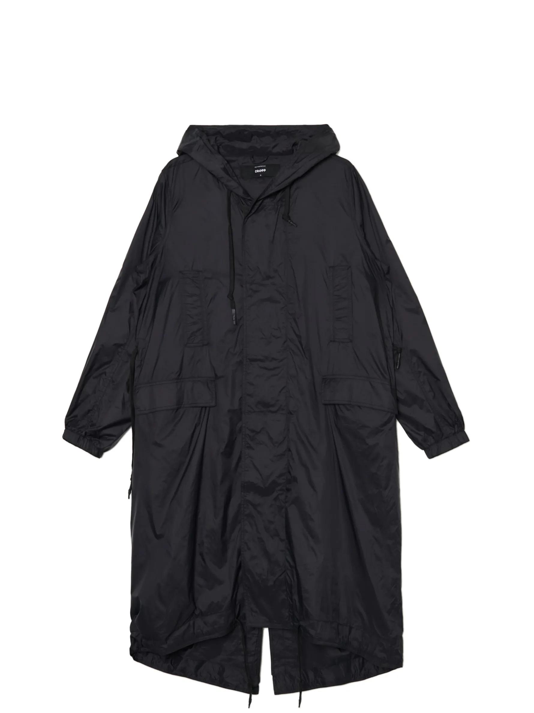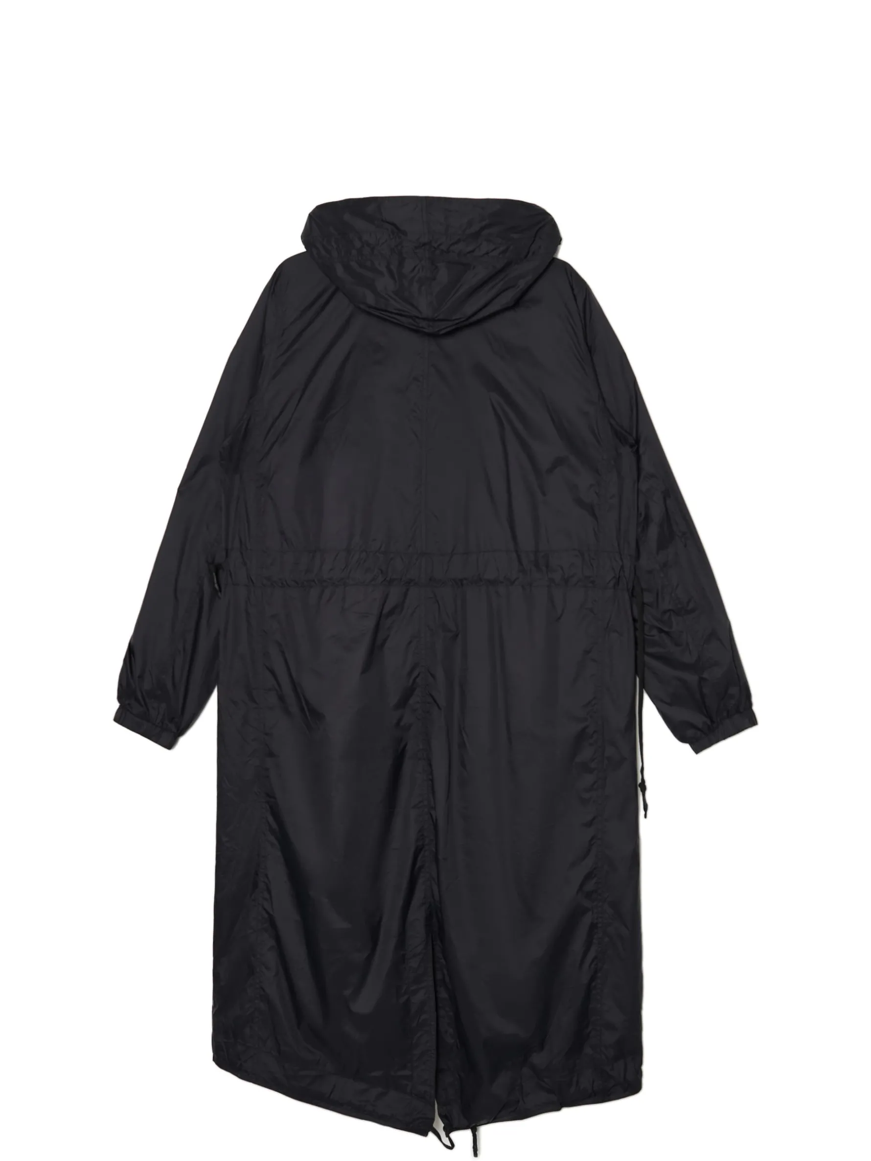Damski płaszcz z kapturem typu parka, uszyty z lekkiej, nylonowej tkaniny. Idealny na sezon przejściowy! lekki materiał regularny krój zapięcie na zamek na całej długości listwa kryjąca z zapięciem na zatrzaski szeroki kaptur z troczkami długie rękawy wykończone elastyczną gumą w talii wszyte w tunel wiązane troczki dół zakończony gumką ze stoperem cztery kieszenie rozcięcie z tyłu