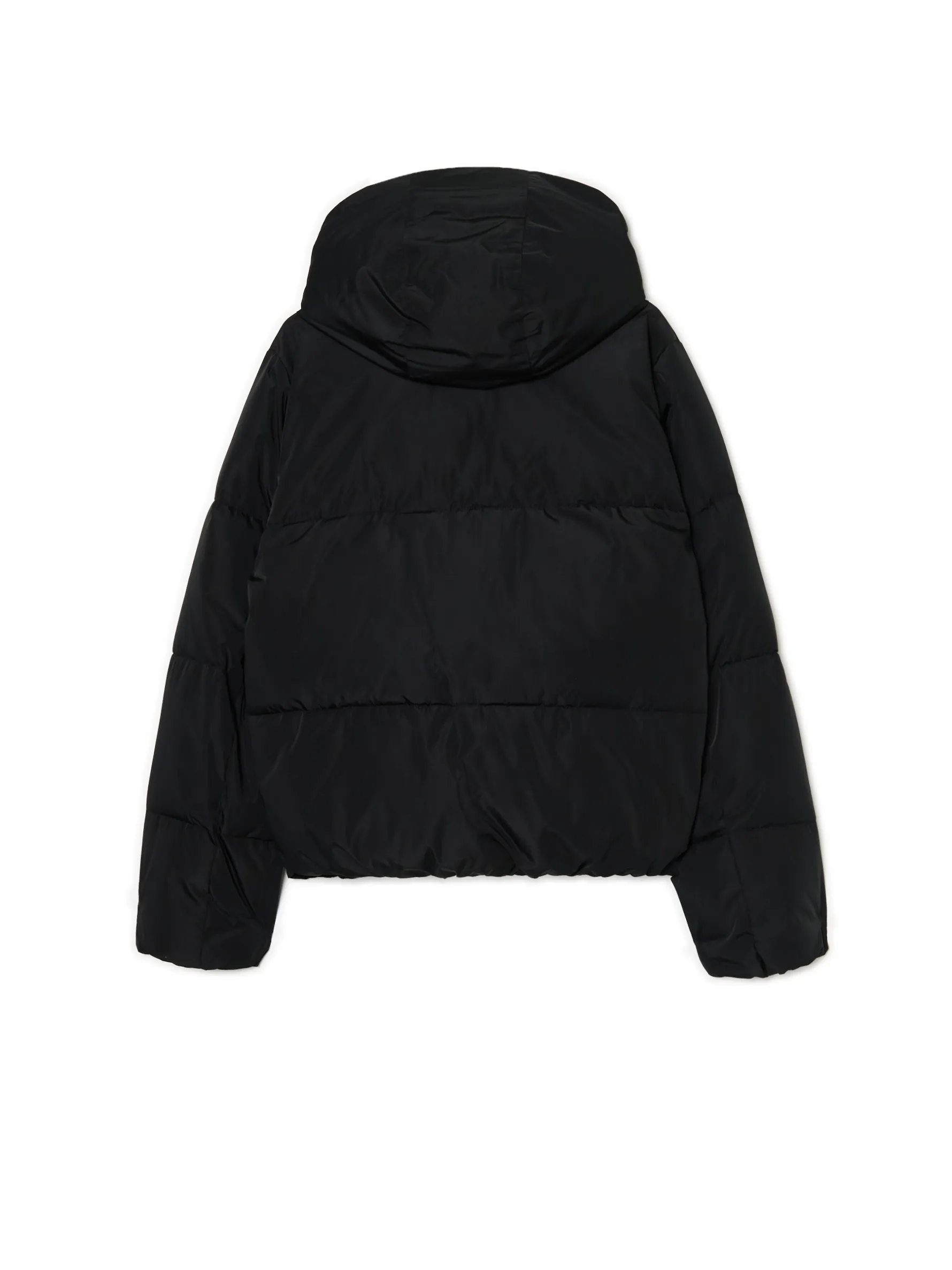Cropp Kurtki, Płaszcze*Czarna pikowana kurtka z kapturem czarny