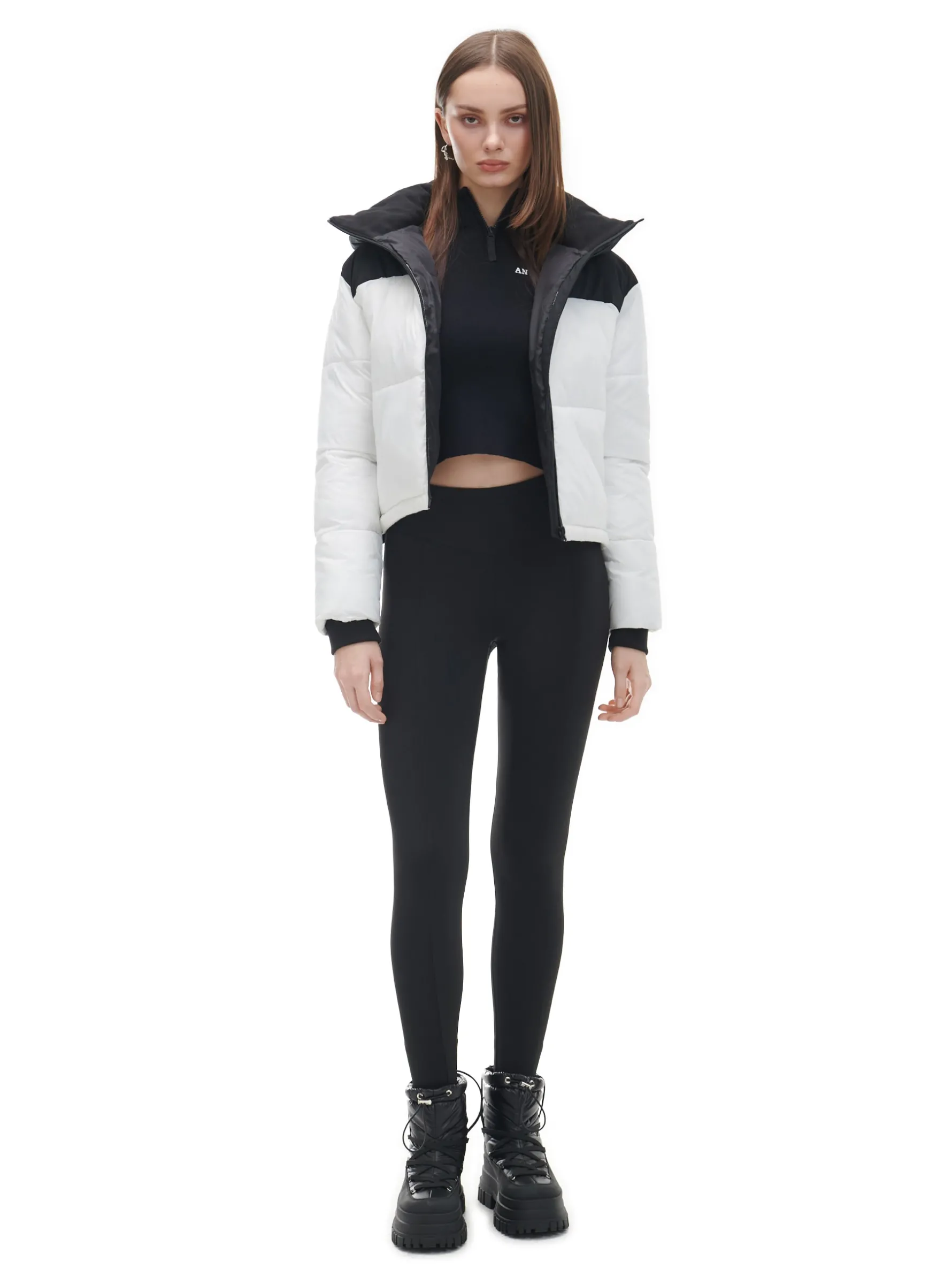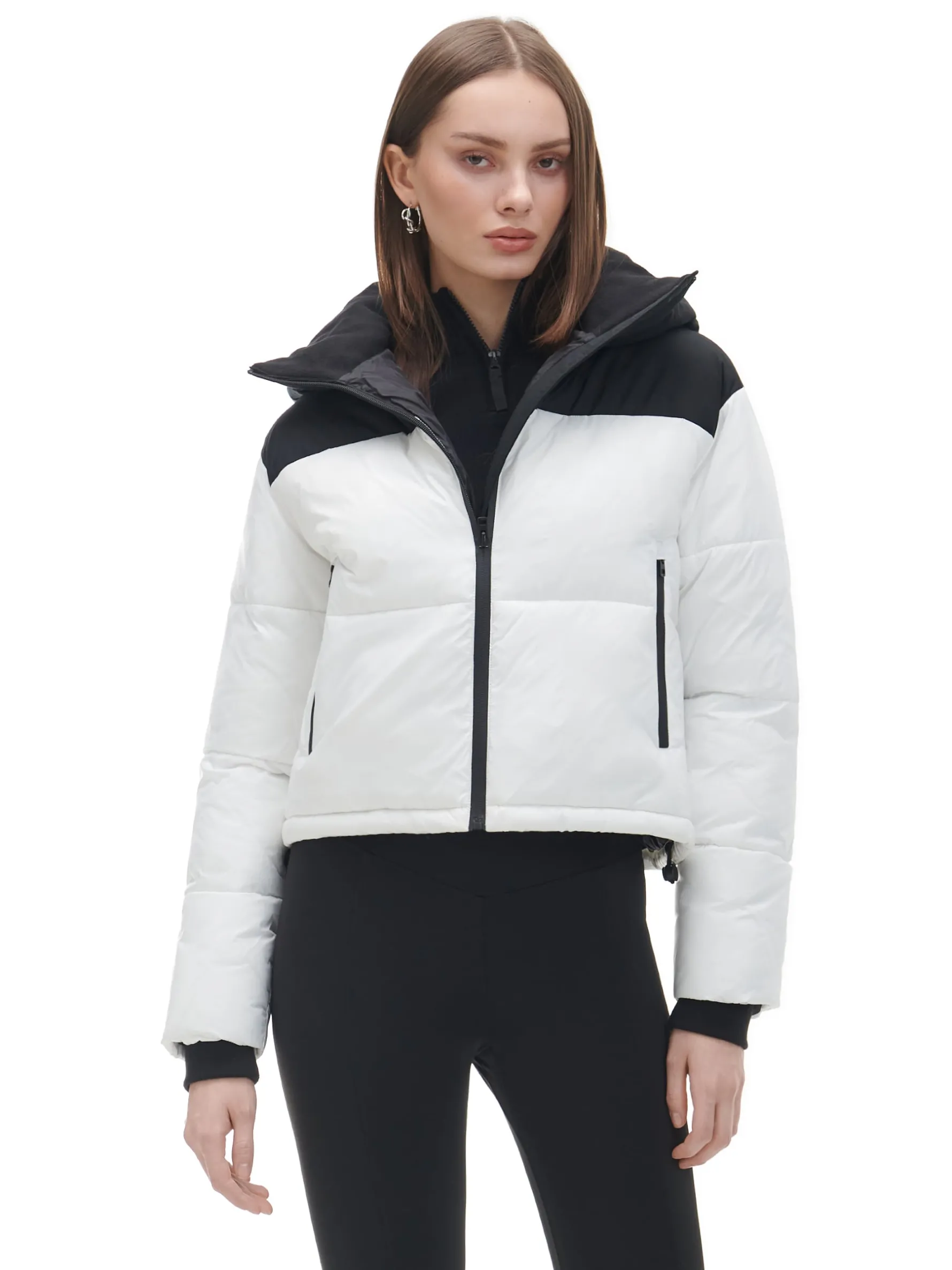 Cropp Kurtki, Płaszcze*Czarno-biała kurtka puffer z kapturem biały