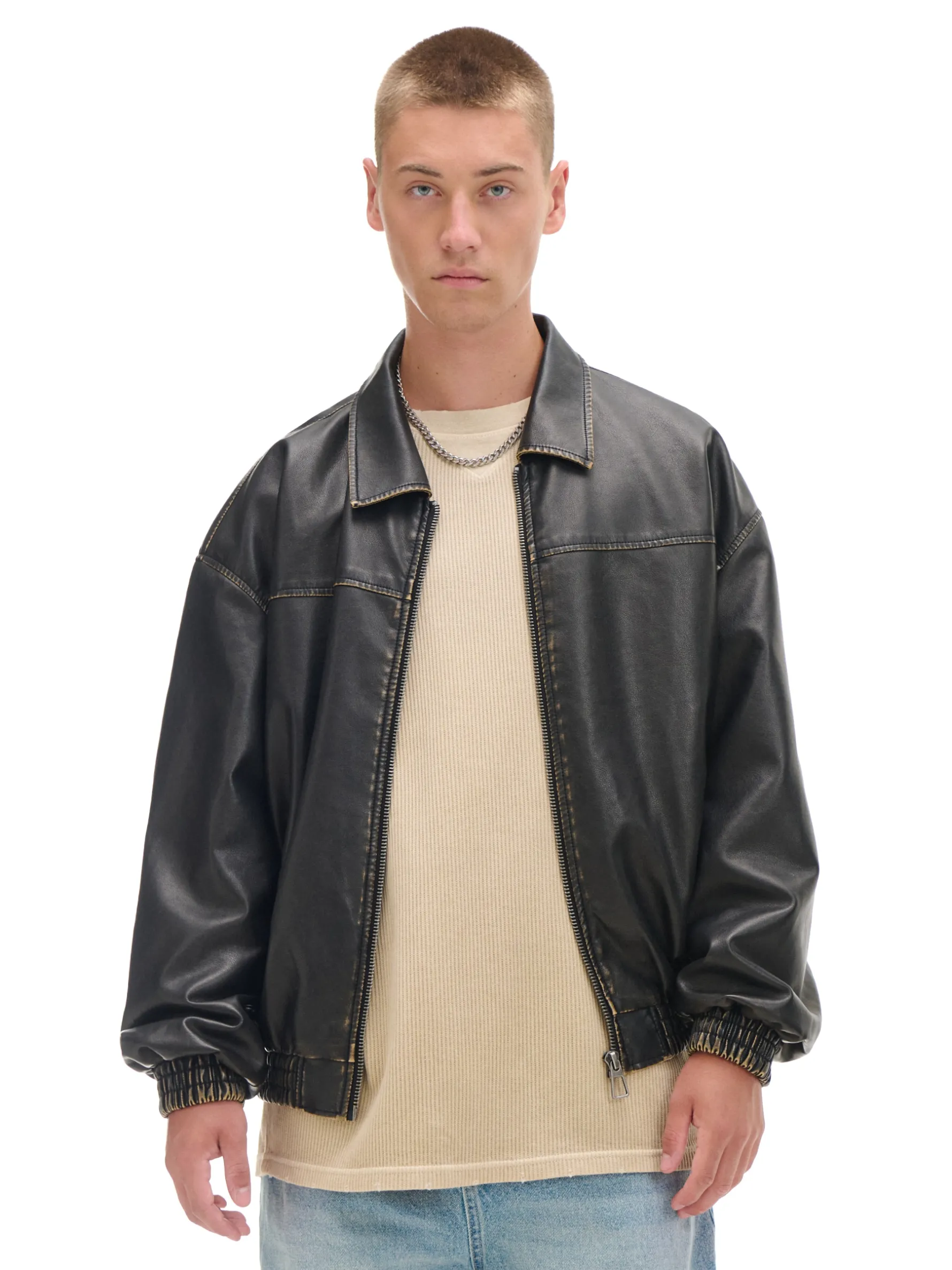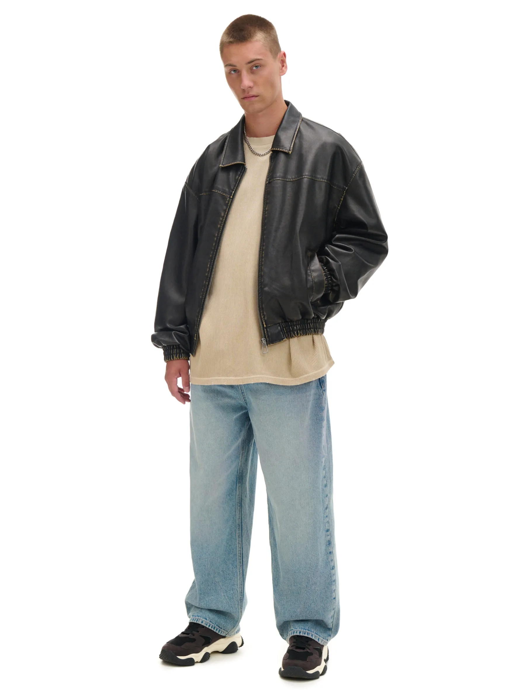 Męska kurtka typu bomber, uszyta z ekologicznej skóry. Ozdobą tego modelu jest ponadczasowy efekt znoszenia. przyjemna w dotyku, ekologiczna dzianina zapięcie na metalowy zamek wewnątrz wykończenie na podszewce kołnierz z otwartymi klapami dół i rękawy wykończone ściągaczem otwarte kieszenie po bokach delikatny efekt sprania Wzrost modela: 185 cm PROTECTION LEVEL 2rn Kurtka uszyta z tkaniny z lekkim wypełnieniem, której właściwości zapewnią Ci ochronę przed wiatrem i deszczem. Doskonale sprawdzi się w sezonie przejściowym.