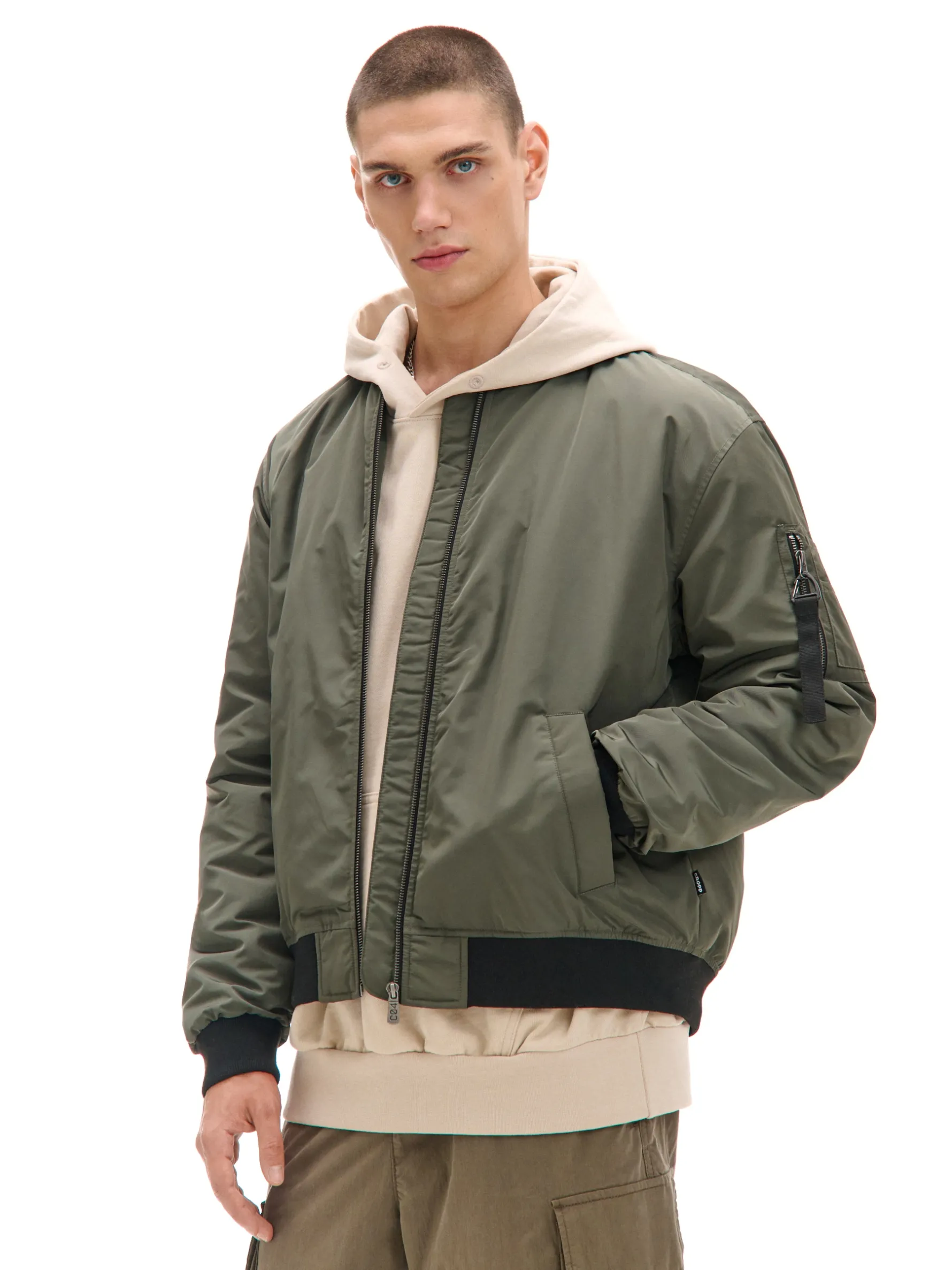 Cropp Kurtki, Płaszcze*Kurtka bomberka z kieszenią na rękawie zielony