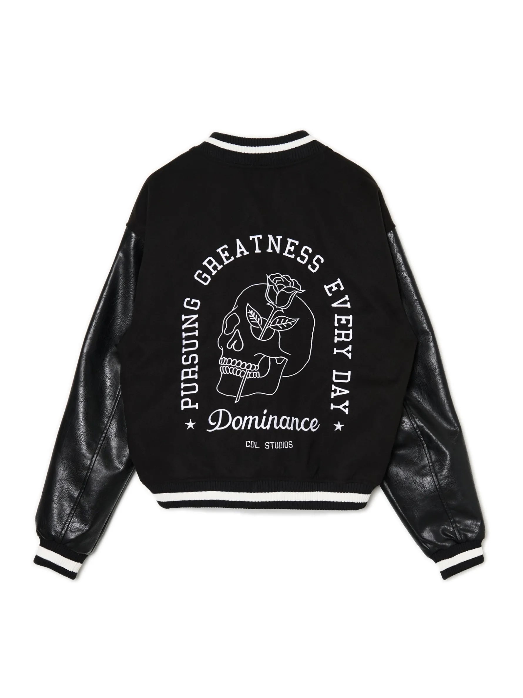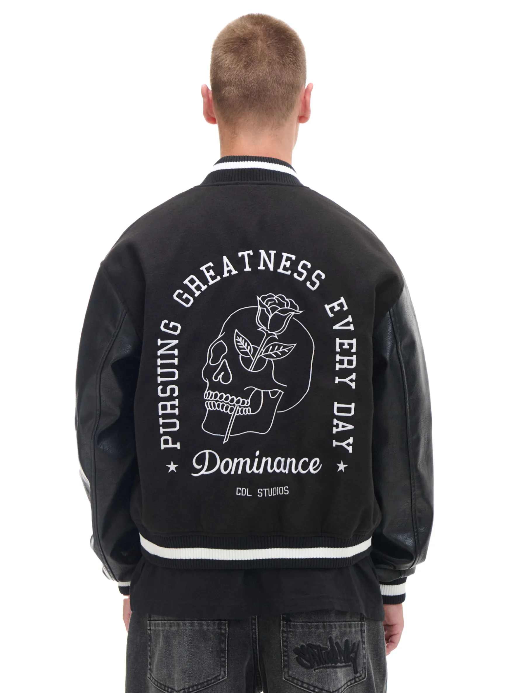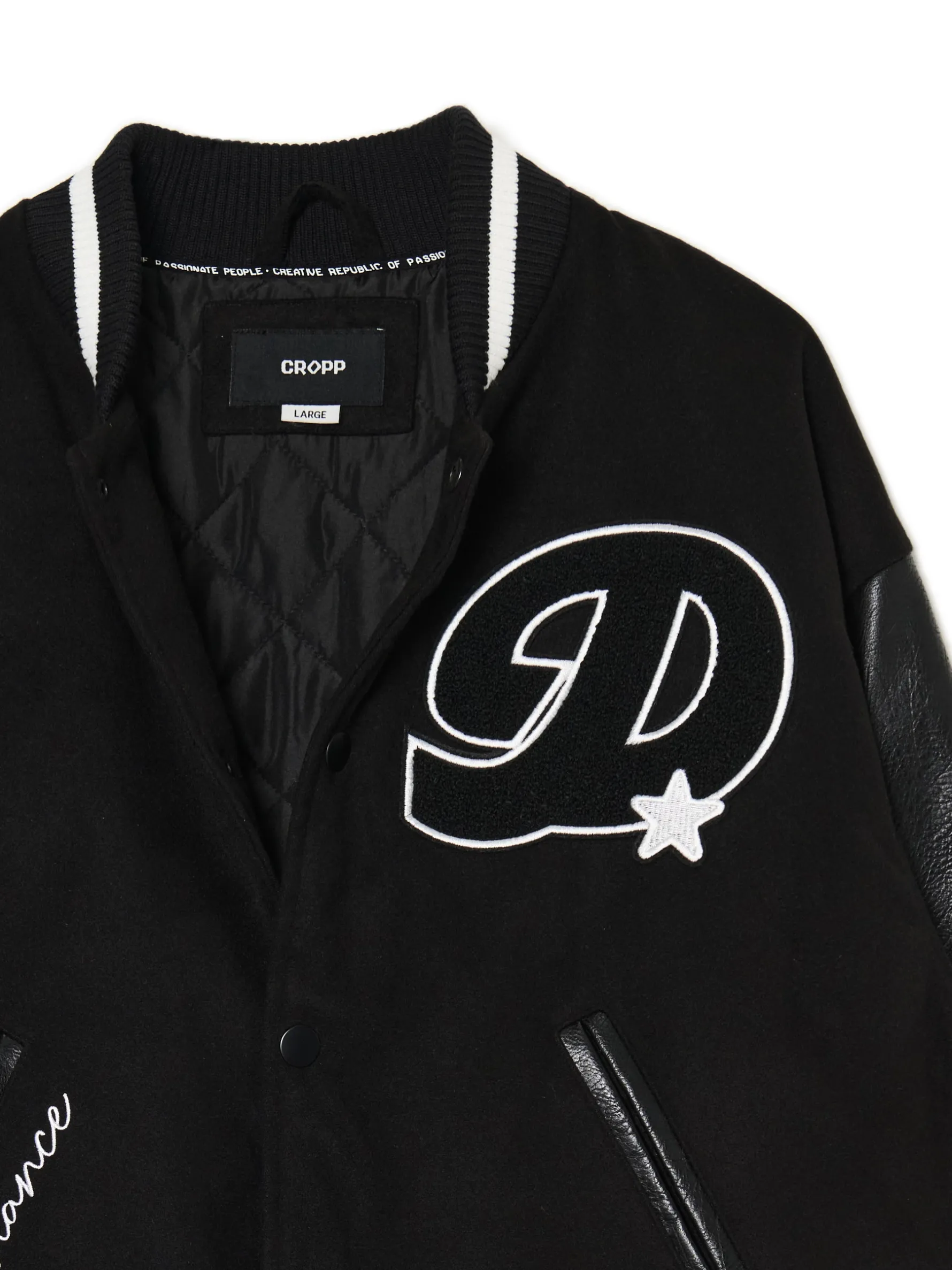Męska kurtka typu bomber, uszyta z mieszanki dzianin w czarnym kolorze. Na uwagę zasługuje filcowy korpus, rękawy ze skóry ekologicznej, pikowana podszewka i ten oryginalny nadruk na plecach. Sztosowy item! przyjemna w dotyku, ekologiczna dzianina fason college wewnątrz pikowana podszewka zapięcie na zatrzaski na całej długości dekolt w kształcie litery V długie rękawy wykończone elastycznym ściągaczem dwie kieszenie z przodu wewnętrzna kieszeń zapinana na rzep kontrastowe wykończenie lamówką autorskie hafty na całości oryginalny print Wzrost modela: 185 cm PROTECTION LEVEL 2rn Kurtka uszyta z tkaniny z lekkim wypełnieniem, której właściwości zapewnią Ci ochronę przed wiatrem i deszczem. Doskonale sprawdzi się w sezonie przejściowym.