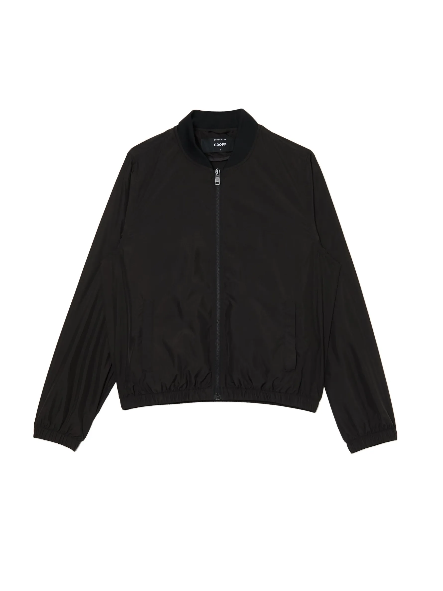 Damska czarna kurtka o kroju bomber, uszyta z lekkiej, gładkiej tkaniny. Idealna do outfitów all black. klasyczny, regularny krój długie rękawy i dolny brzeg zakończone elastyczną gumką zapięcie na suwak dwie kieszenie dostępna w innych kolorach