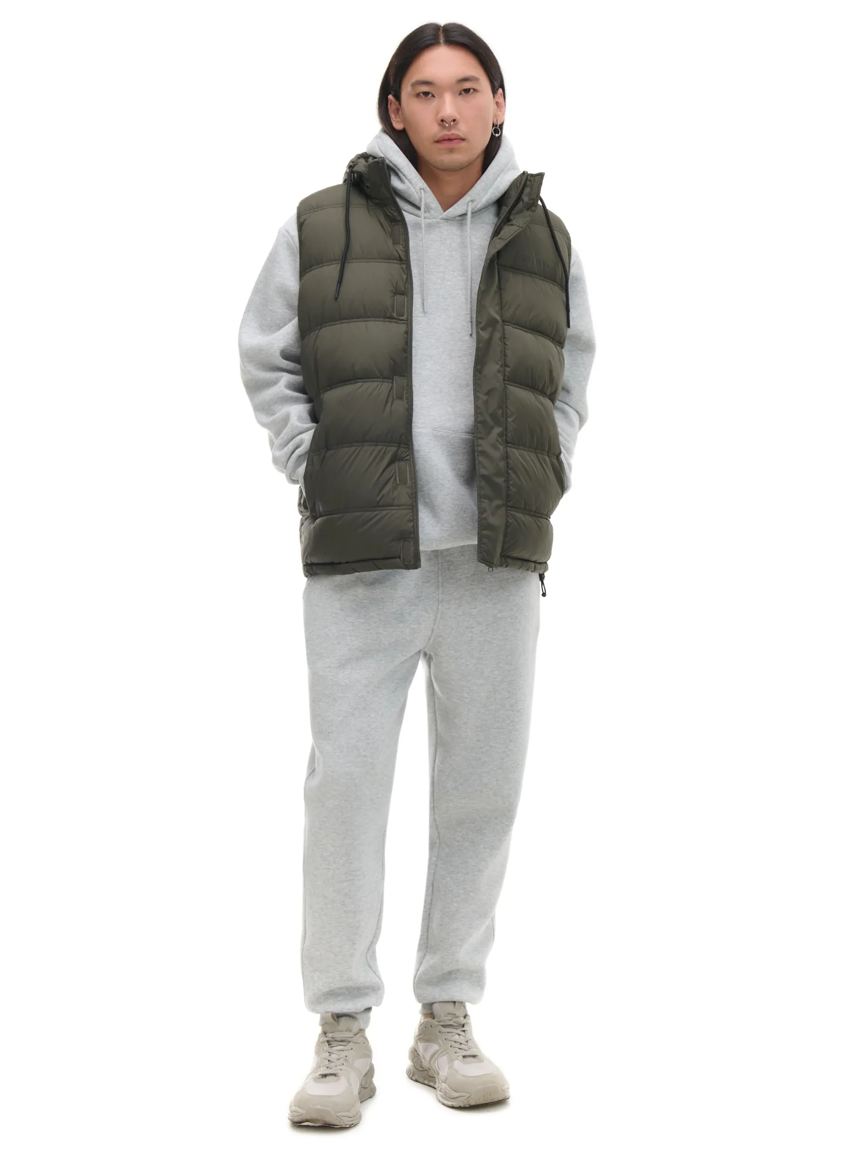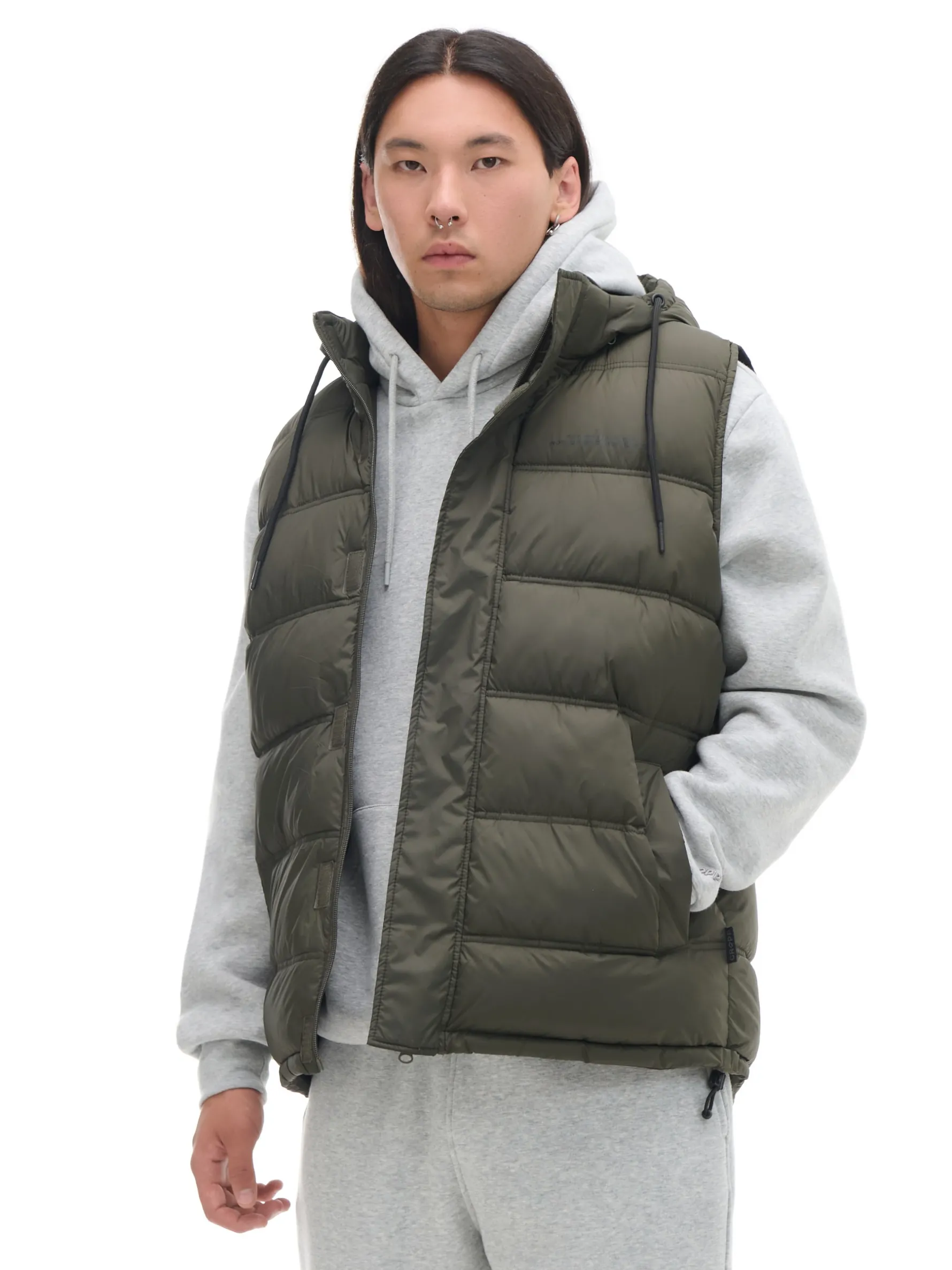 Cropp Kurtki, Płaszcze*Oliwkowa pikowana kamizelka z kapturem zielony