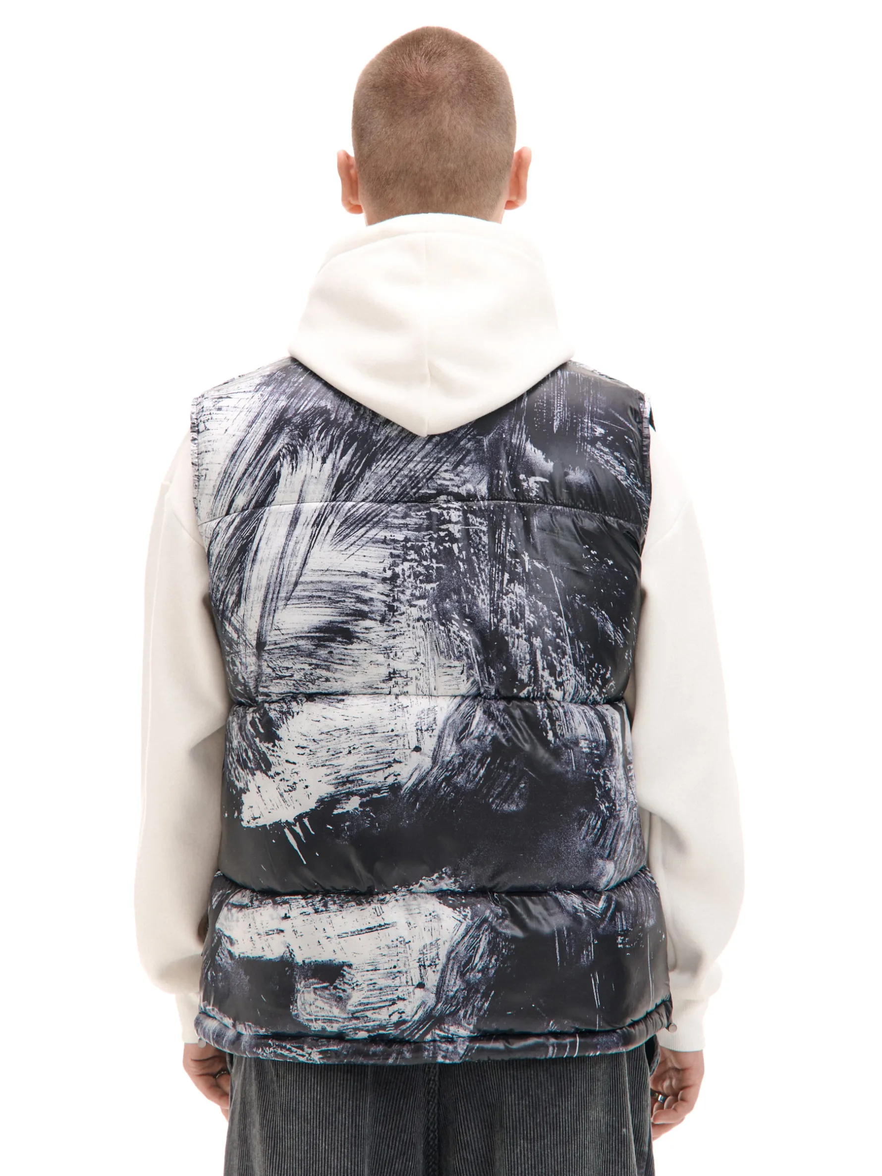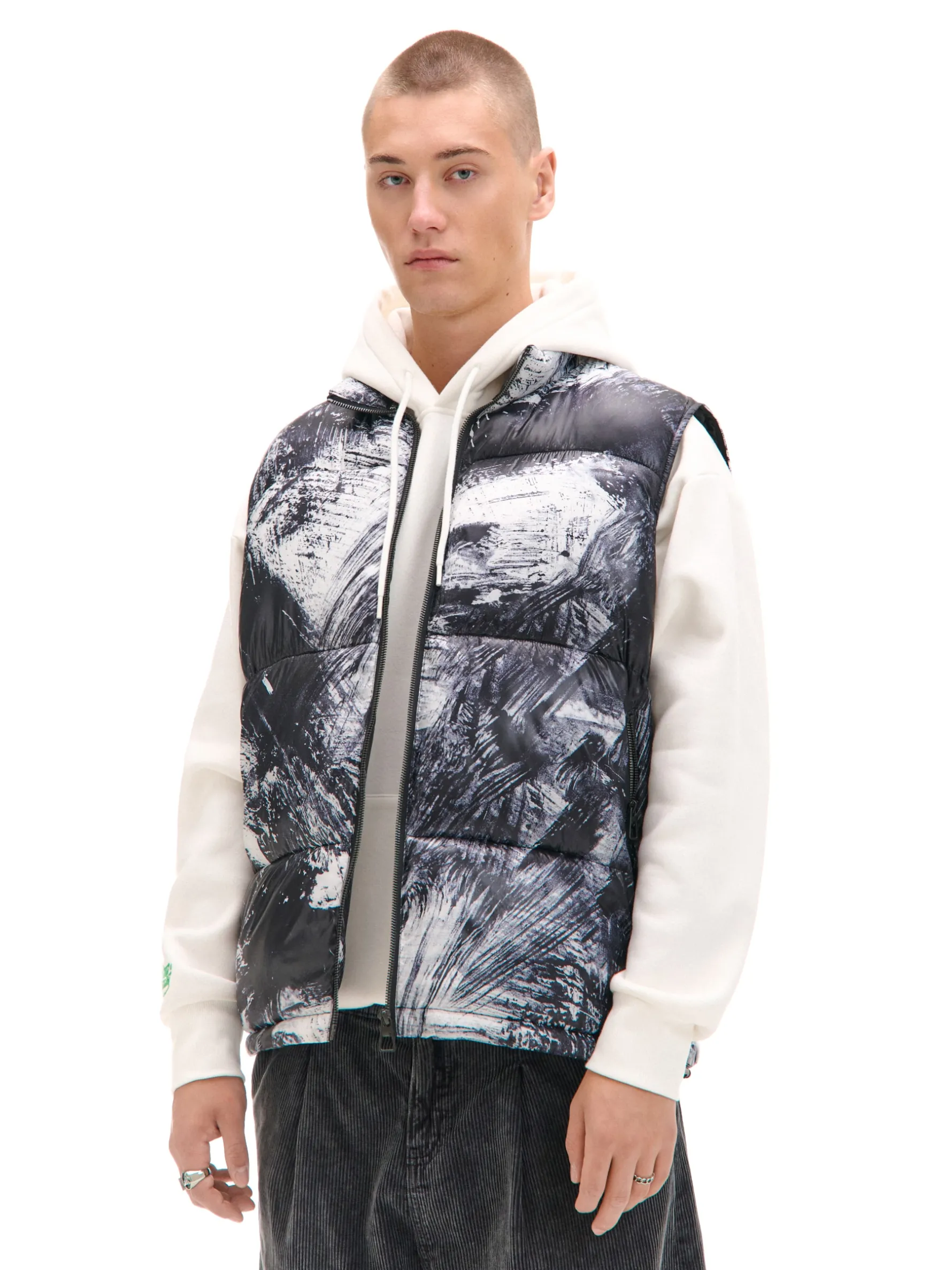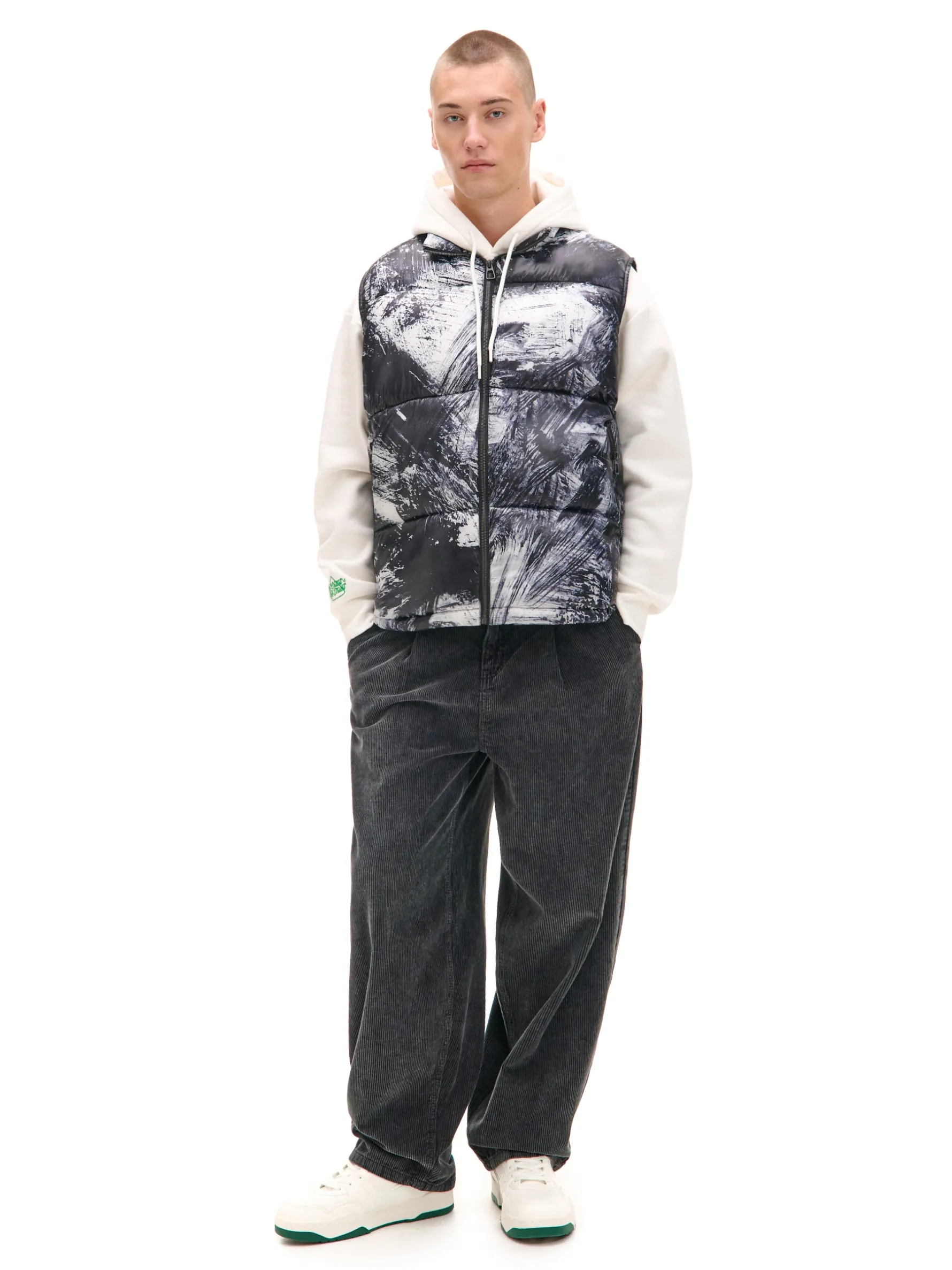 Kamizelka męska na sezon przejściowy, uszyta z pikowanej tkaniny. Na całości efektowny nadruk w odcieniach szarości. pikowanie na całości zapinana na zamek na całej długości regulacja dołu za pomocą gumki ze ściągaczem dwie kieszenie z zamkami po bokach wewnątrz kieszeń zapinana na rzep oryginalny print Wzrost modela: 185 cm PROTECTION LEVEL 3 Kamizelka uszyta z tkaniny z większym ociepleniem, której właściwości zapewnią Ci nie tylko ochronę przed wiatrem i deszczem, ale też niskimi temperaturami.