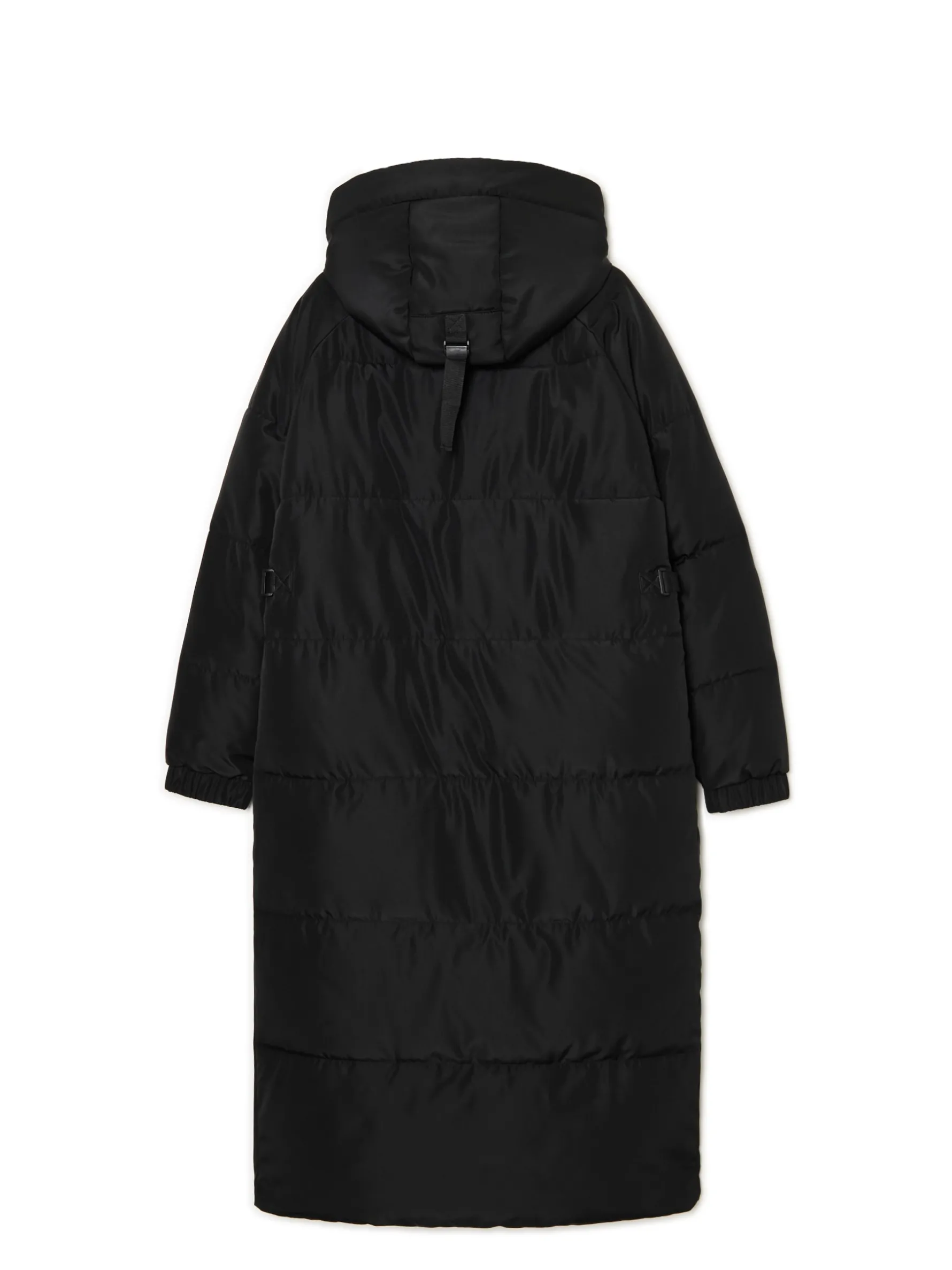 Szukasz wyjatkowego płaszcza na zimę? Łap ten pikowany outerwear z dużym, regulowanym kapturem. Uszyty z solidnej tkaniny w kolorze głębokiej czerni i wypełnieniem z tafty. Do tego praktyczne kieszenie i możesz wchodzić w zimę na pełnej!