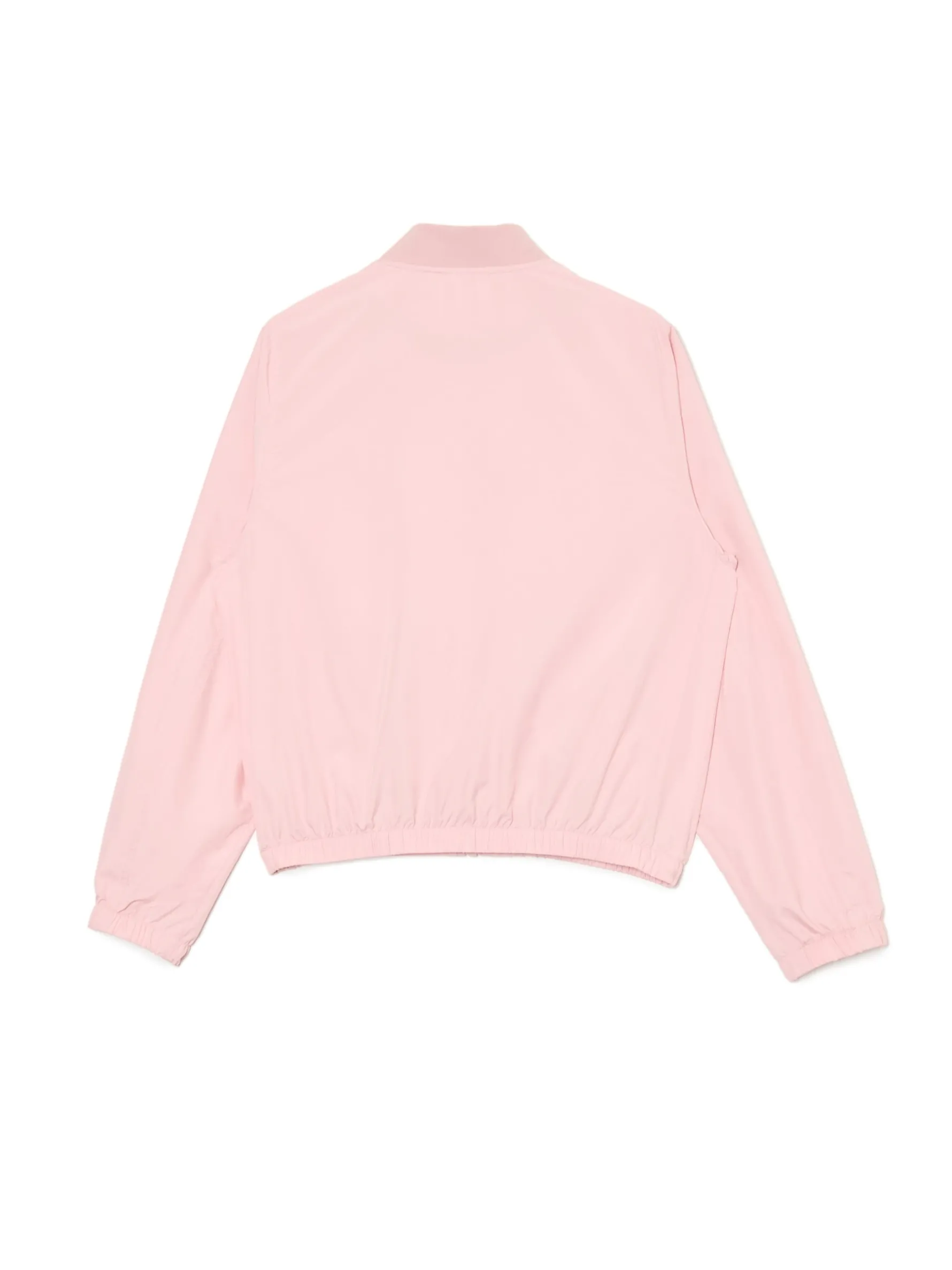 Jasnoróżowa kurtka damska o kroju bomber, uszyta z lekkiej, gładkiej tkaniny. klasyczny krój długie rękawy i dolny brzeg zakończone elastyczną gumką zapięcie na suwak dwie kieszenie dostępna w innych kolorach