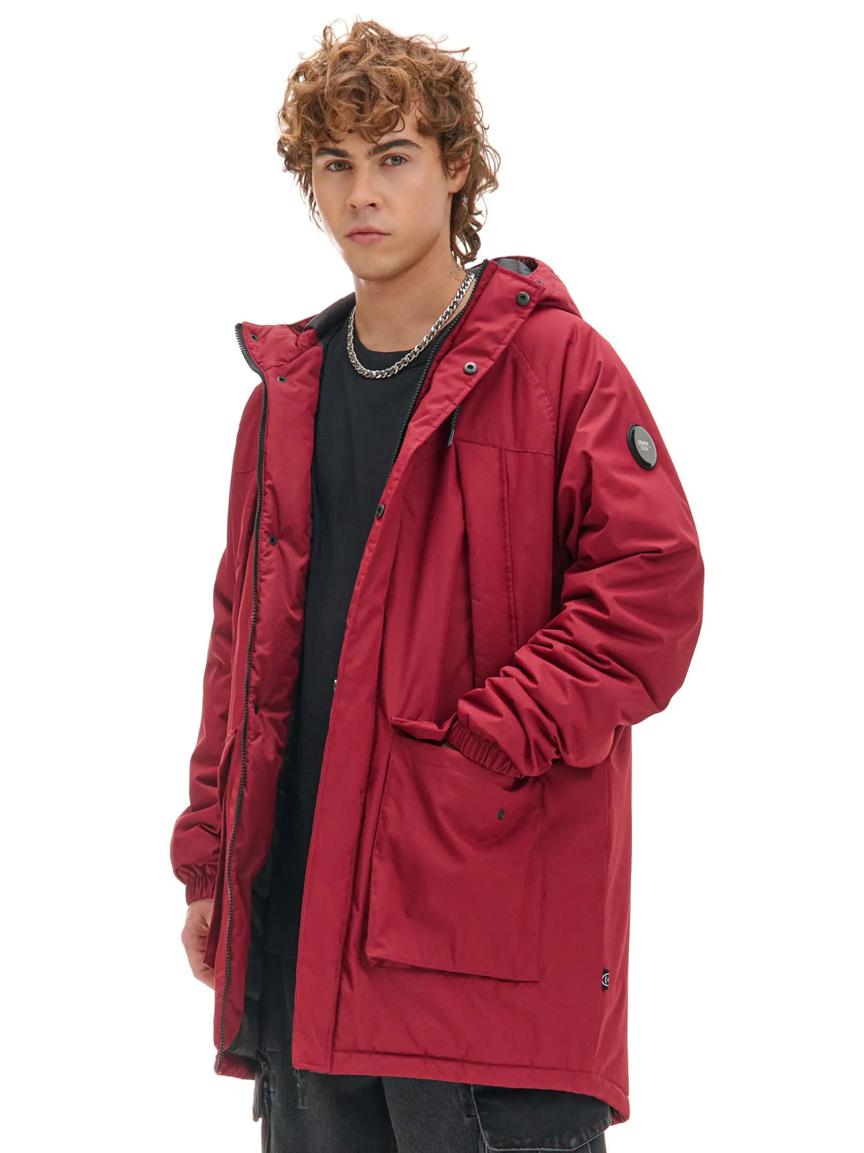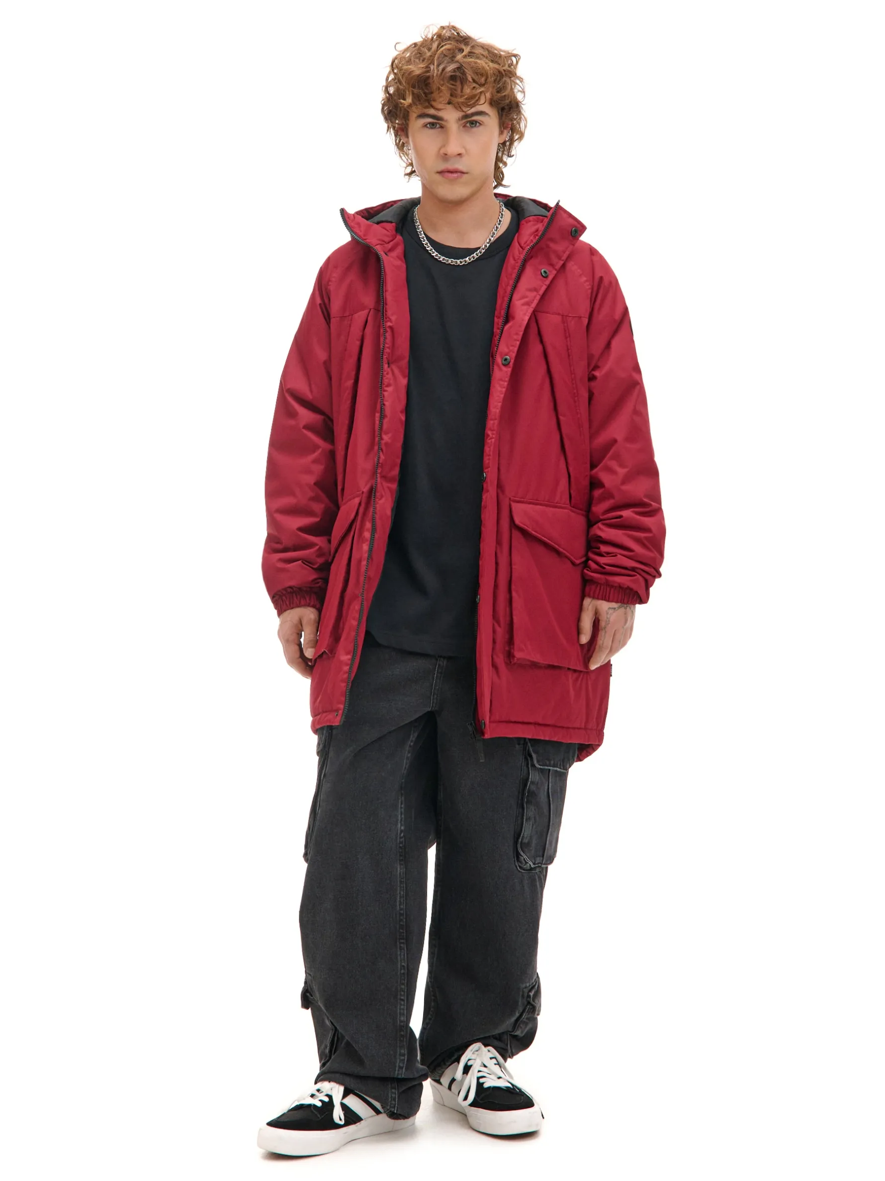 Cropp Kurtki Zimowe|Kurtki, Płaszcze*Bordowy płaszcz z kapturem kasztanowy