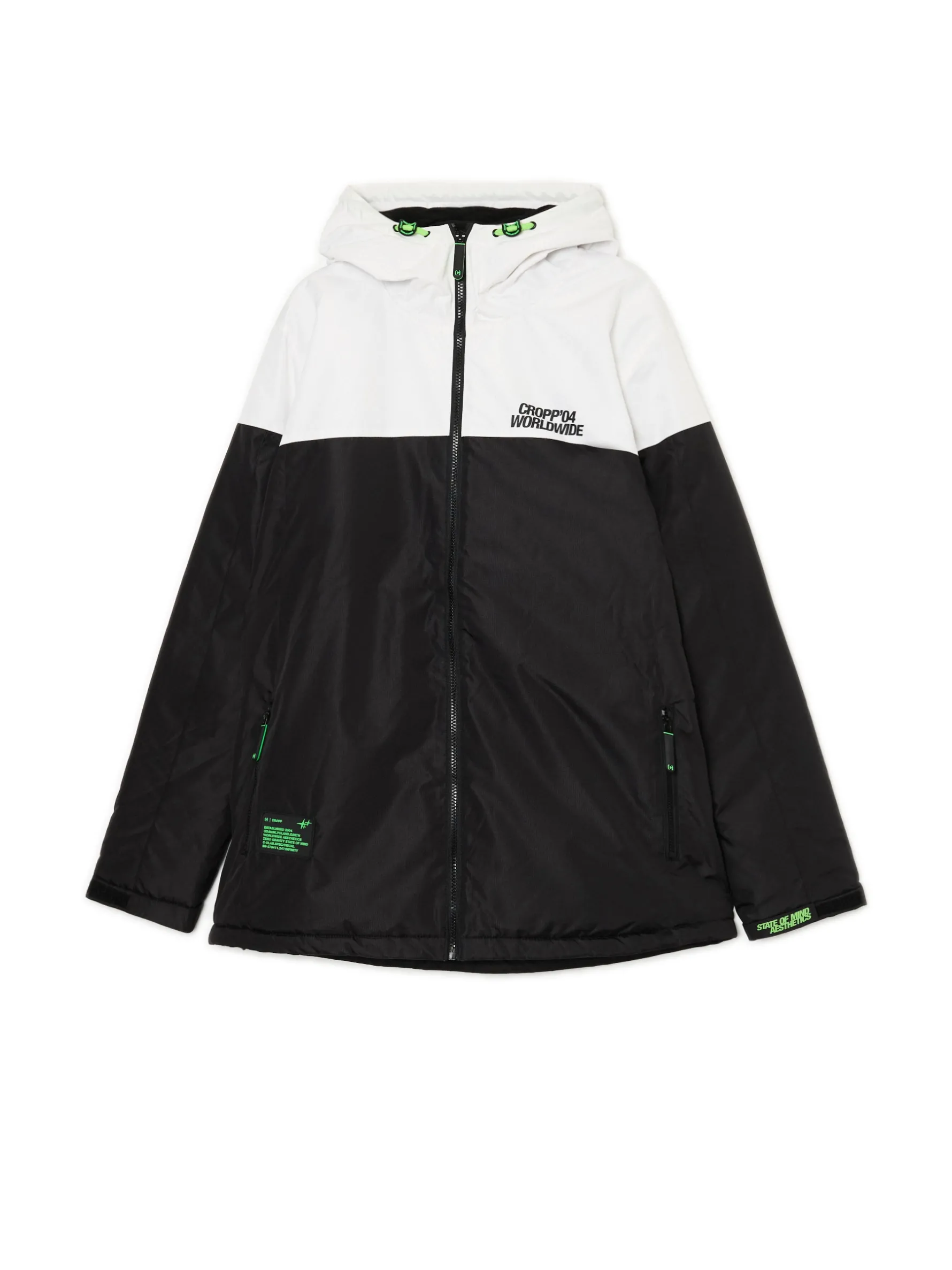 Cropp Kurtki Zimowe|Kurtki, Płaszcze*Dwukolorowa kurtka z kapturem czarny