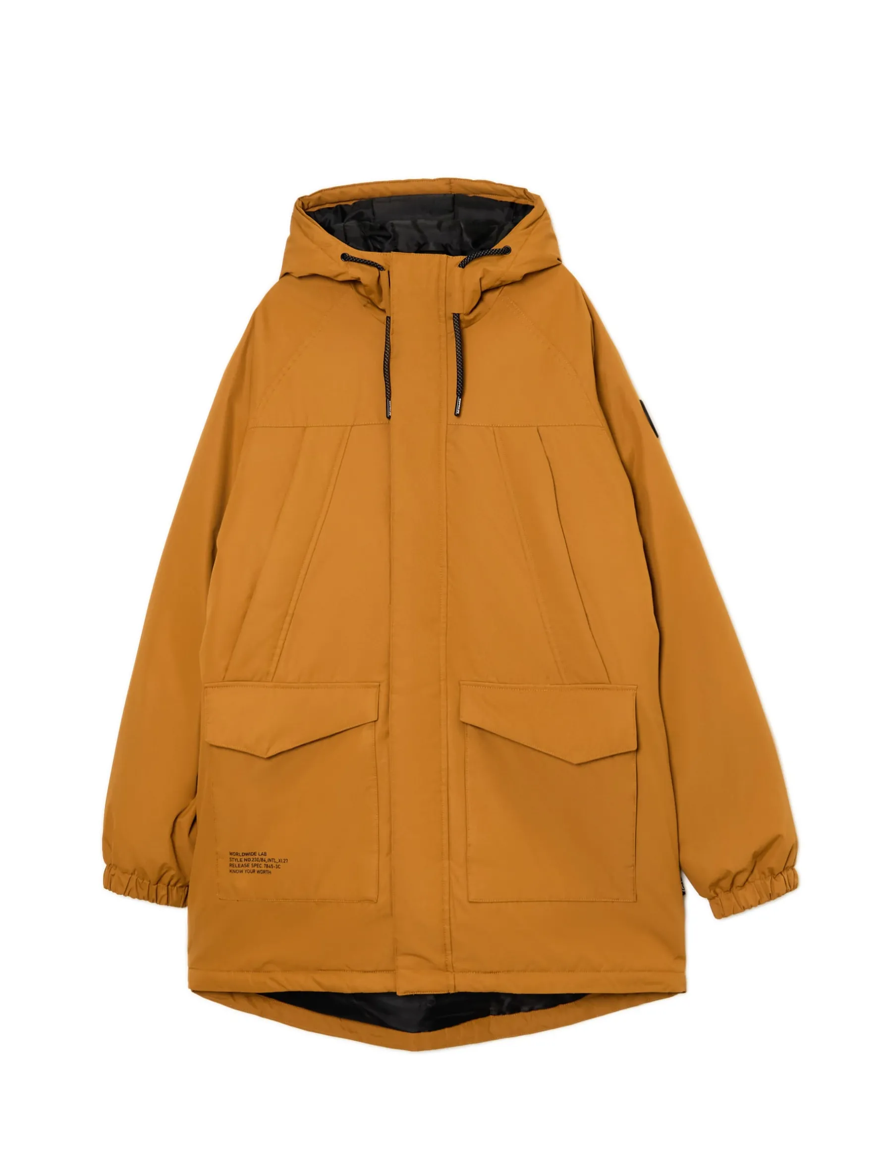Mamy rozwiązanie dla osób, które uwielbiają mieć wszystko przy sobie. Ten męski płaszcz z wodoodporną powłoką posiada aż 6 kieszeni z przodu i jedną wewnętrzną na rzep. Ma też wiele innych zalet! dłuższy tył zapięcie na zamek ukryty pod listwą z napami podwójny puller obszerny kaptur ze stójką i zapięciem na zatrzaski dodatkowe tunele na troczki długie rękawy z gumką przy mankietach otwarte kieszenie z przodu dwie kieszenie z patkami i zapięciem na zatrzaski kieszenie boczne z zamkami wewnątrz kieszeń zapinana na rzep małe nadruki tekstowe na jednej z kieszeni naszywka Cropp PROTECTION LEVEL 3rn Kurtka uszyta z tkaniny z większym ociepleniem, której właściwości zapewnią Ci nie tylko ochronę przed wiatrem i deszczem, ale też niskimi temperaturami.