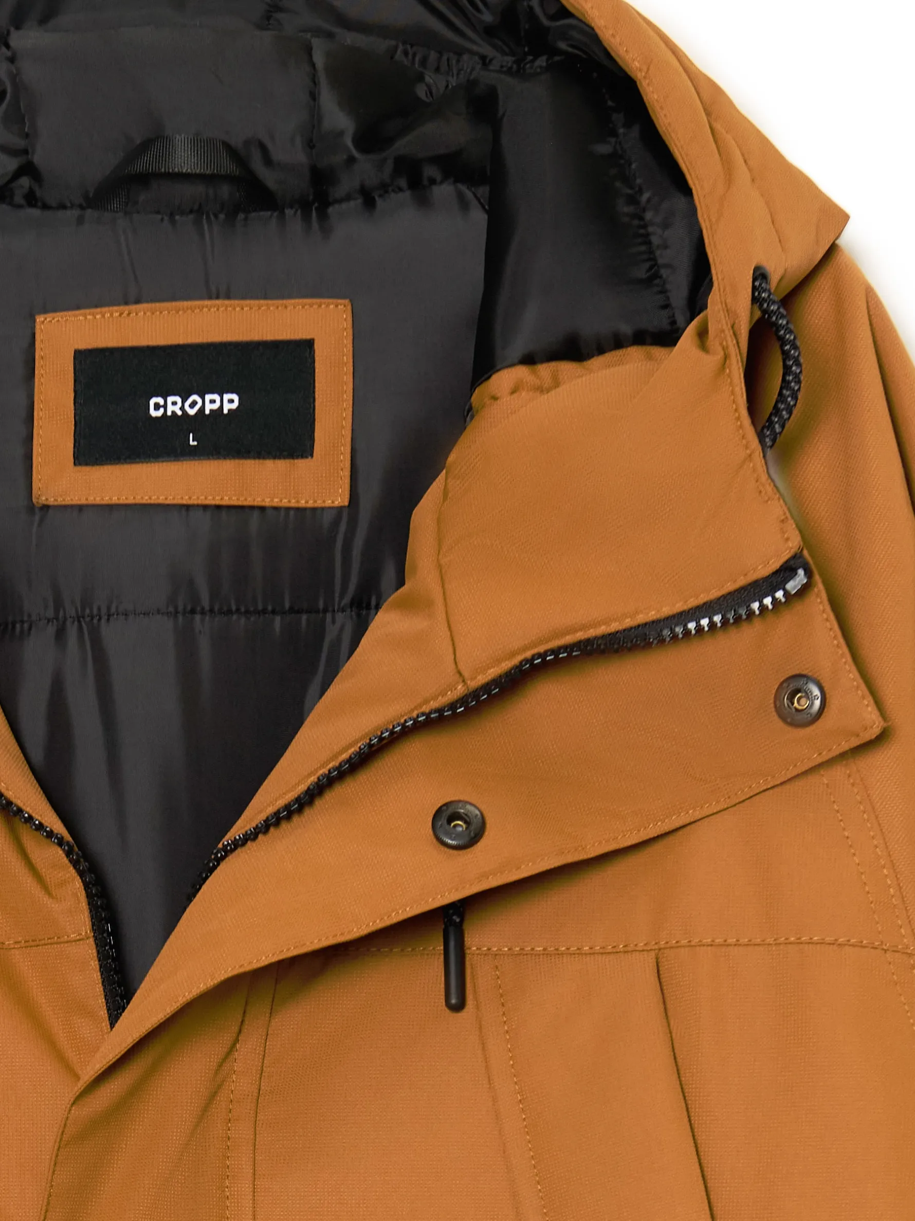 Cropp Kurtki Zimowe|Kurtki, Płaszcze*Gładki płaszcz z kapturem brązowy
